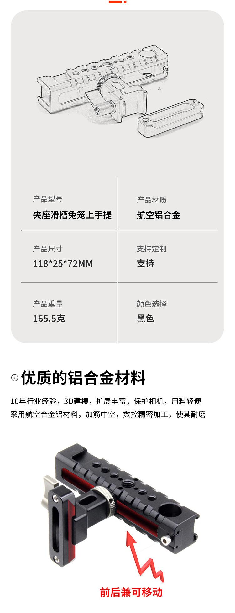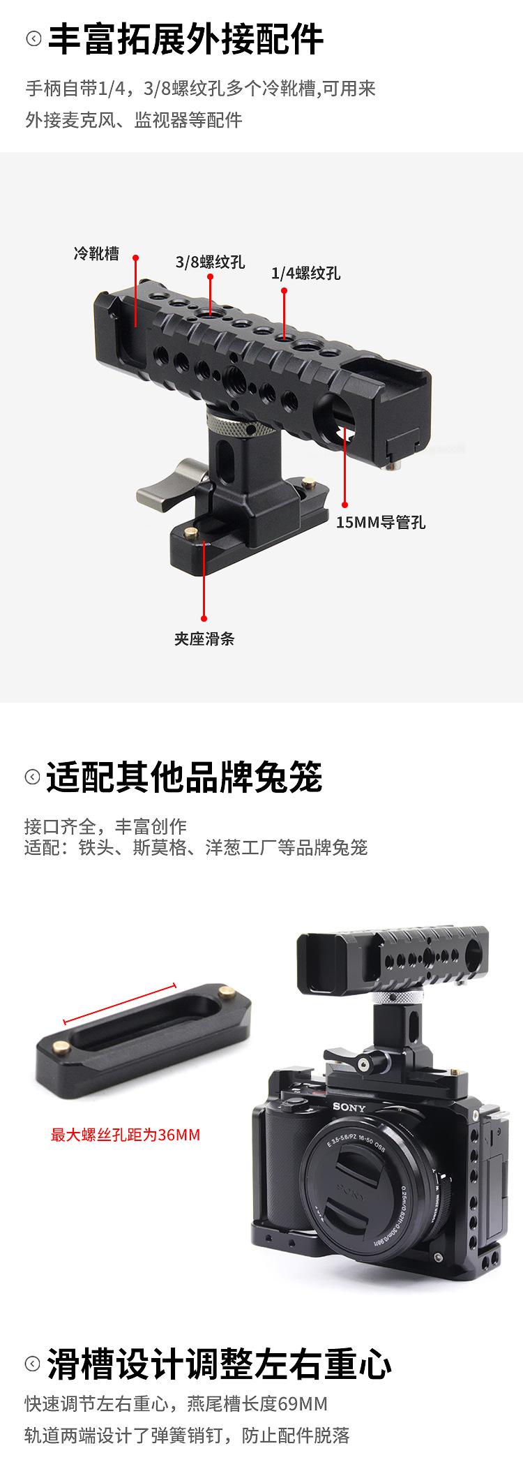 Jaula para Cámara Mango Arri 3/8 Sin Espejo Mango Deslizante Abrazadera Deslizante Portátil Expansión Externa Accesorios de Fotografía