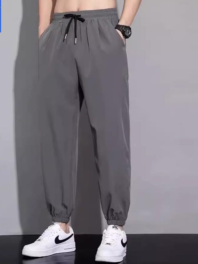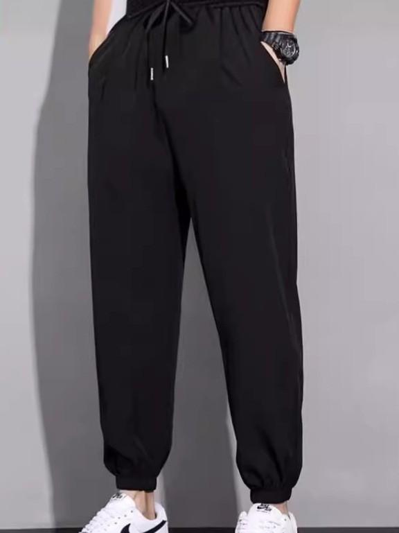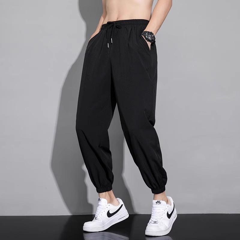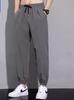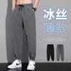 Pantalones casuales de seda de hielo para hombre, pantalones cortos finos de verano para hombre, pantalones deportivos holgados de marca de moda de secado rápido con cordones en los tobillos.
