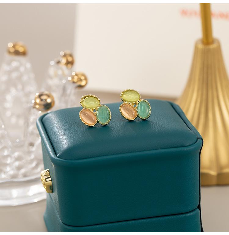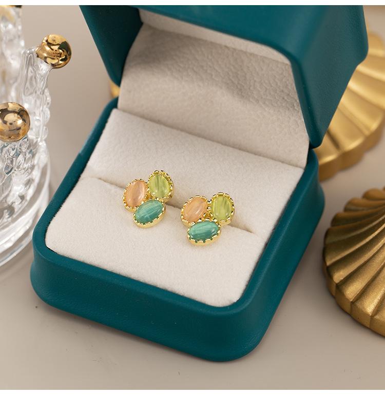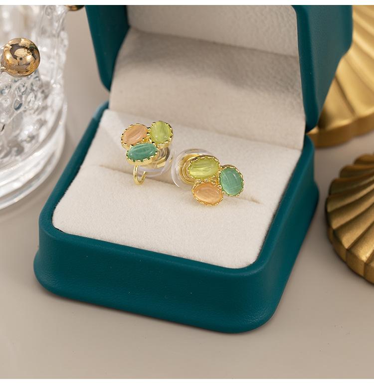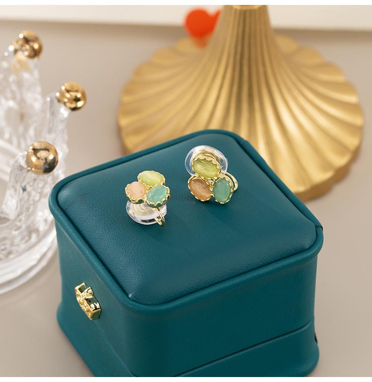 Lindos aretes pequeños dulces de ópalo tricolor diseño simple elegante exquisito clip para la oreja de bobina de mosquito para orejas no perforadas