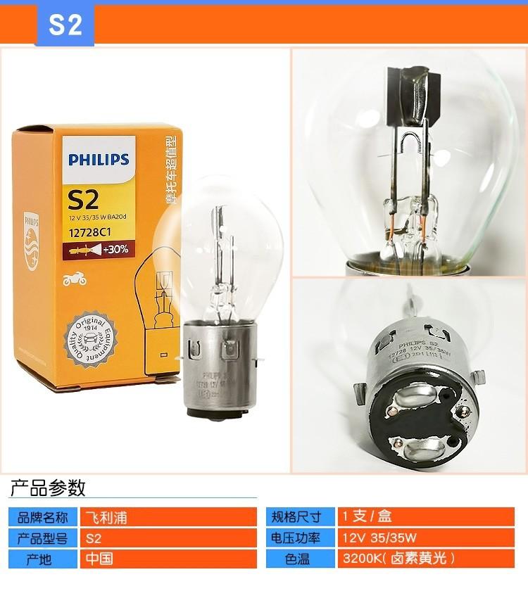 Faro de motocicleta Philips 12V S2 de doble pata triciclo eléctrico de pedal haz alto y bajo integrado 35W bombilla cabeza redonda