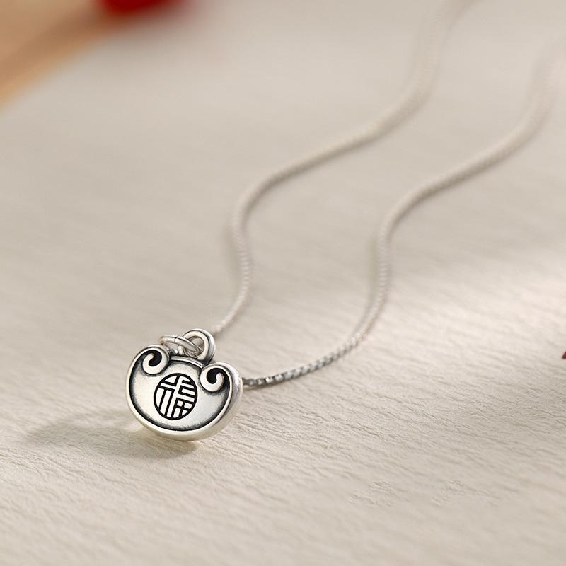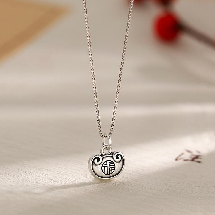 Collar de lingote pequeño y exquisito de estilo chino retro con diseño de personaje Ping An Fu, cadena de clavícula, accesorios personalizados de moda de alta calidad