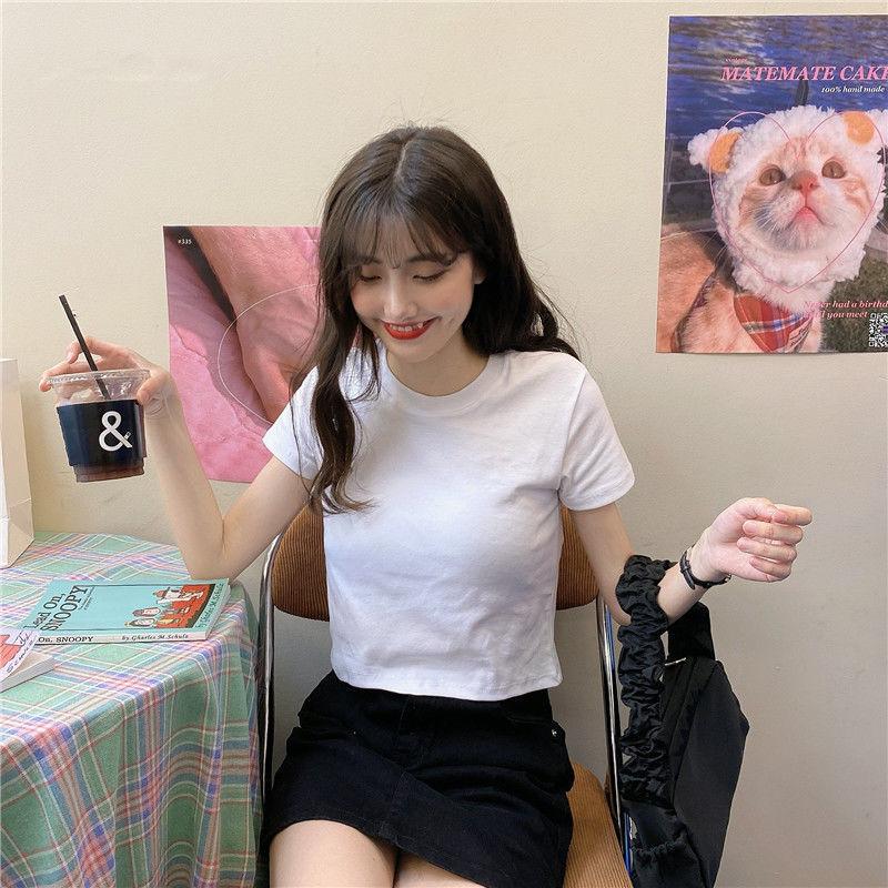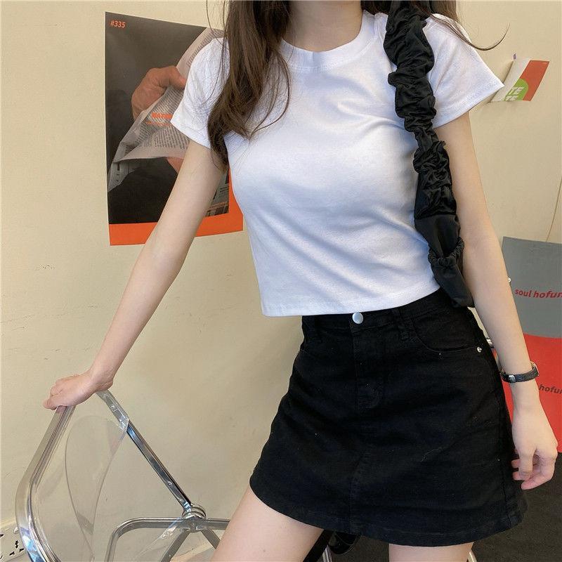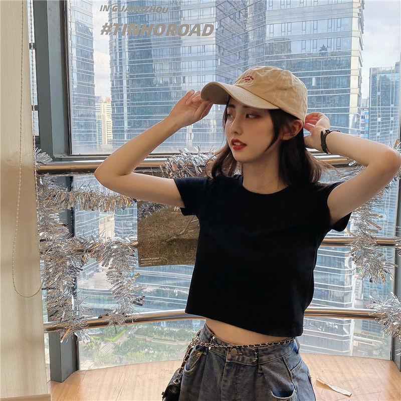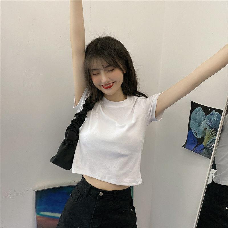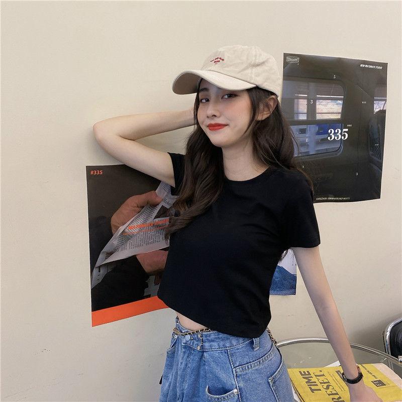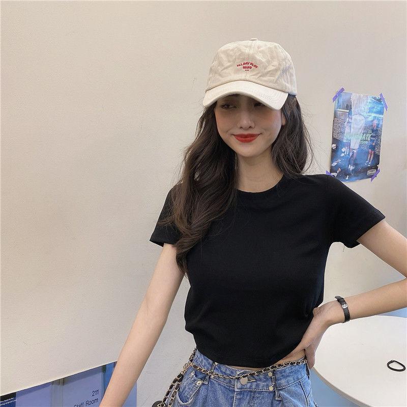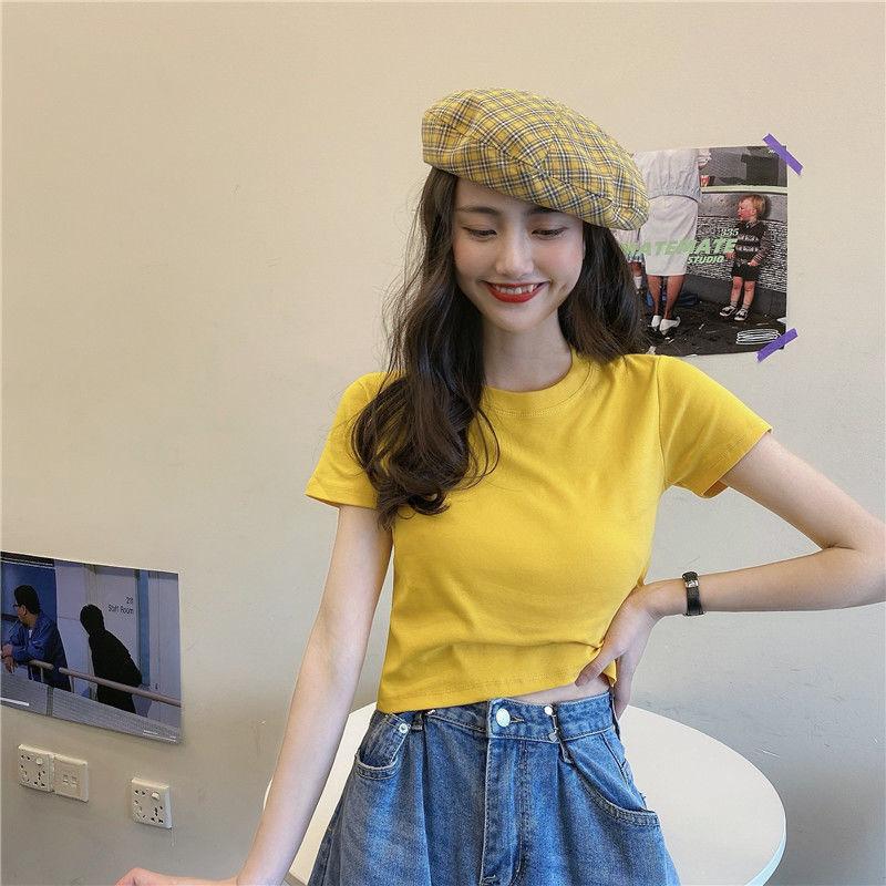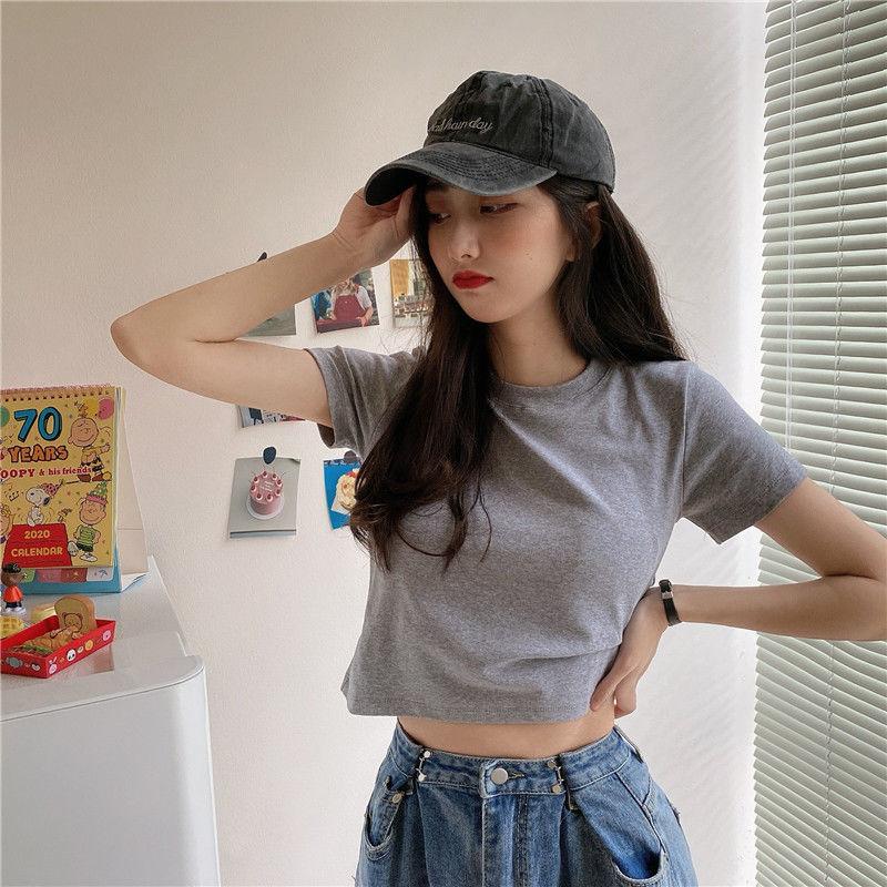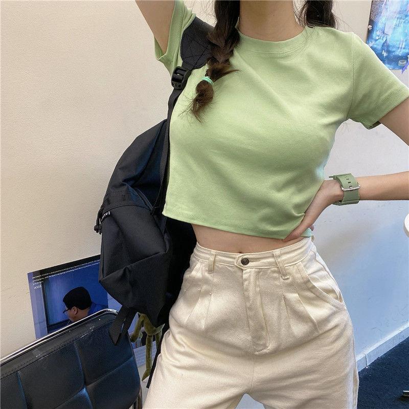 Camiseta de Manga Corta con Cuello Redondo Corto Color Caramelo para Mujer Verano 2025 Estilo Coreano Ropa de Mujer Comercio Exterior Tops de Mujer al Por Mayor