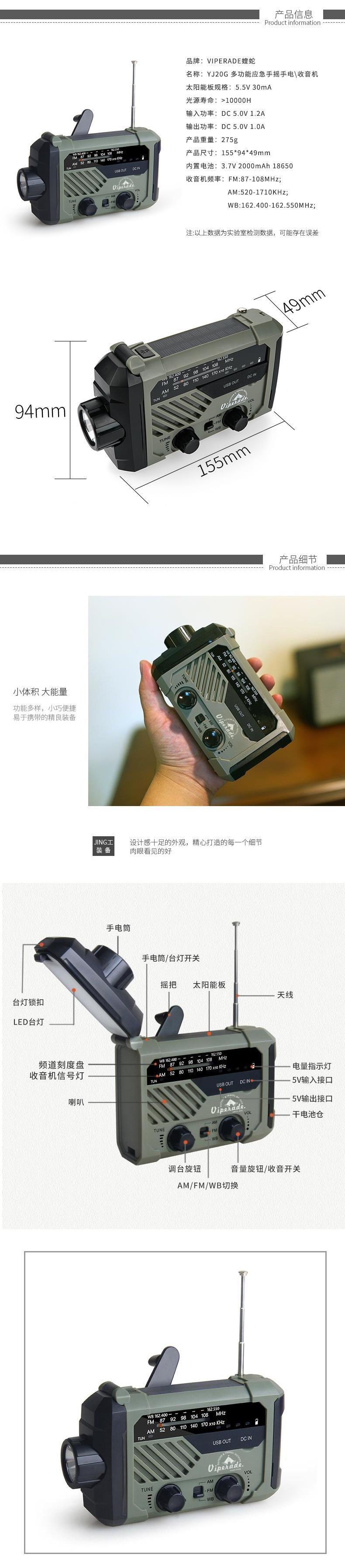 088 Red + hand + solar charging + flashlight