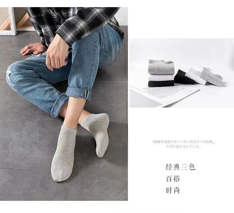 Calcetines Calcetines para Hombre Absorbentes de Sudor Cortos de Verano Delgados de Corte Bajo Boca Baja Invisibles Versátiles Blanco y Negro Gris Calcetines de Barco Venta al por Mayor