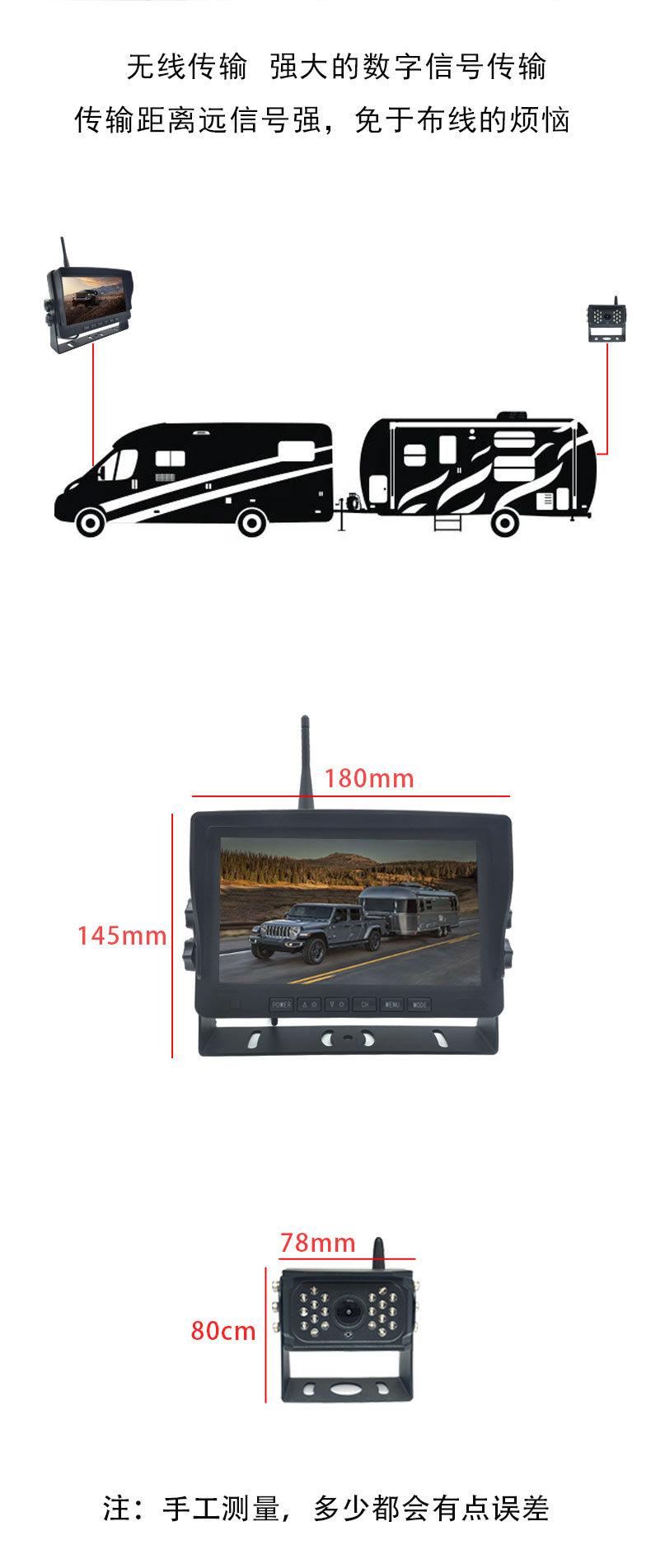 Cámara de marcha atrás HD con alerta temprana inteligente inalámbrica de 7 pulgadas y registro de conducción con imagen de marcha atrás.