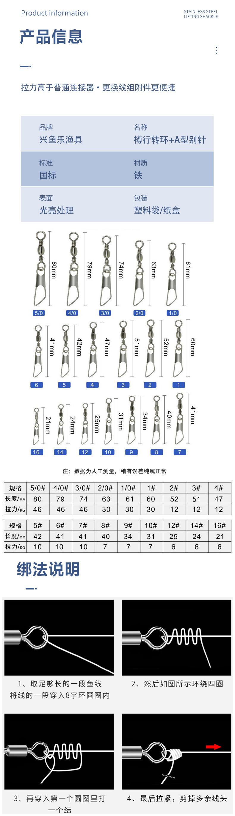 Accesorios de ocho anillos Conector tipo A de 8 anillos Pasador para equipo de pesca Caña de lanzamiento reforzada Conector giratorio en forma de acero inoxidable
