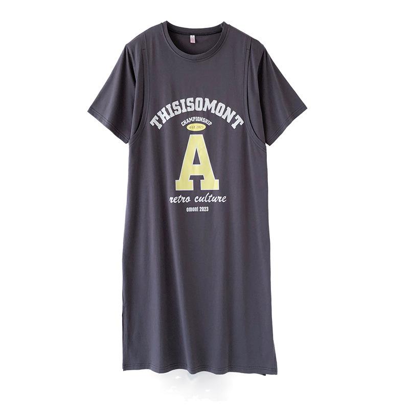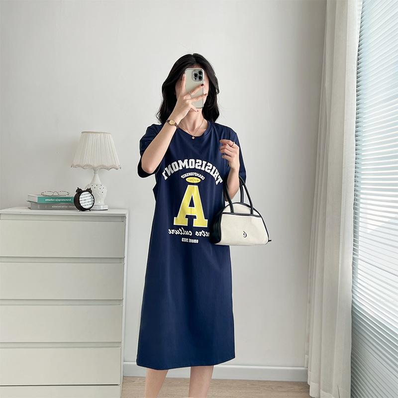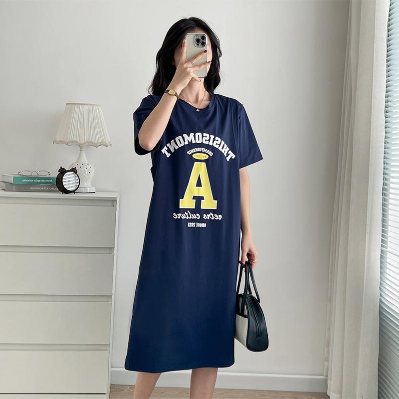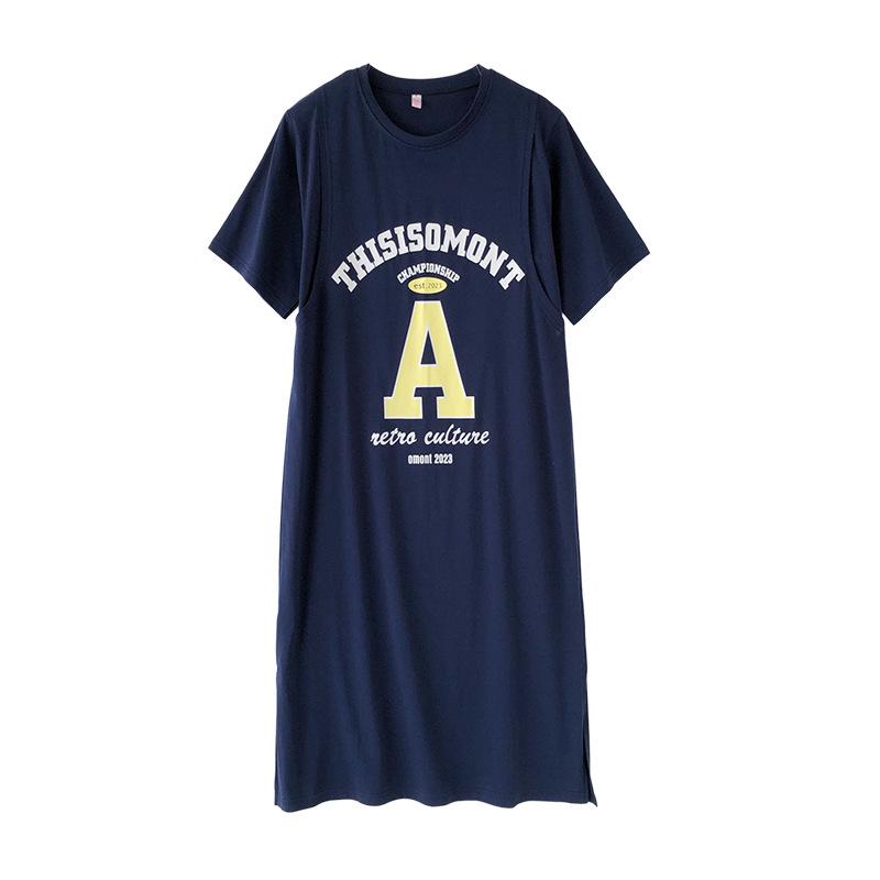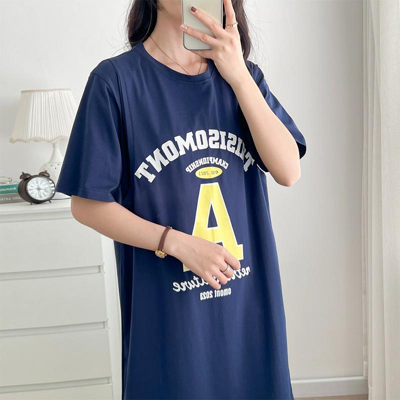 Camiseta larga de verano por encima de la rodilla, ropa exterior posparto, ropa de lactancia con abertura lateral, ropa de maternidad de algodón puro, moda para mamá