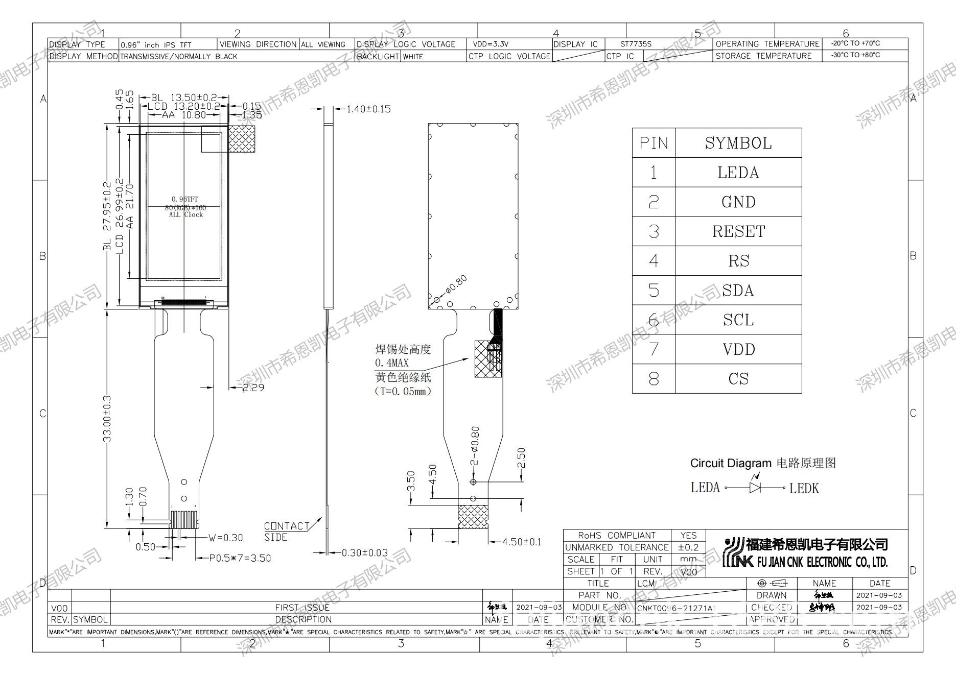 Pantalla LCD de 0.96 pulgadas Resolución de alta definición 80*160 Pantalla LCD TFT Suministro directo de fábrica original Recomendación de exportación de pantalla