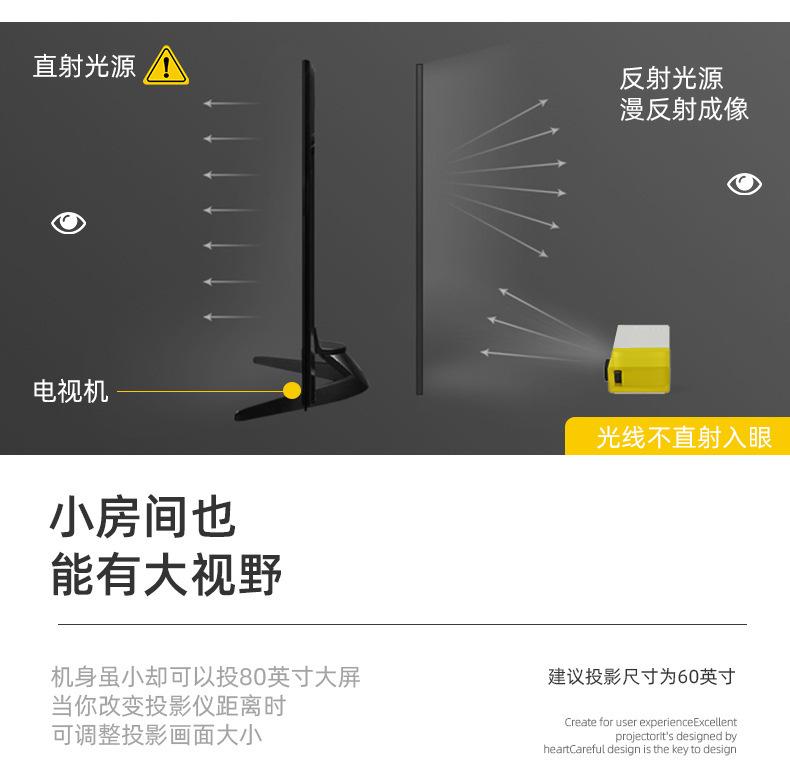 Este mini proyector doméstico es solo adecuado para uso de entretenimiento en el hogar, ¡no para uso de enseñanza en la oficina!