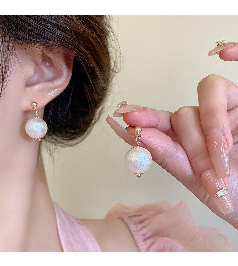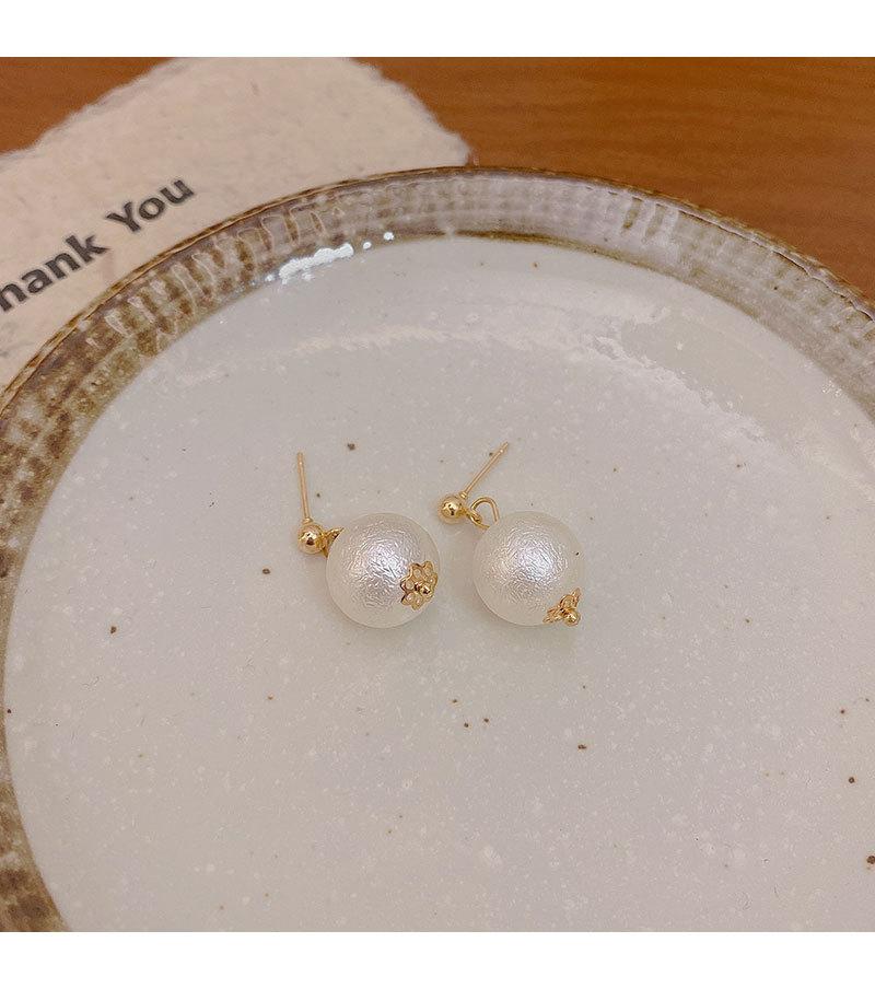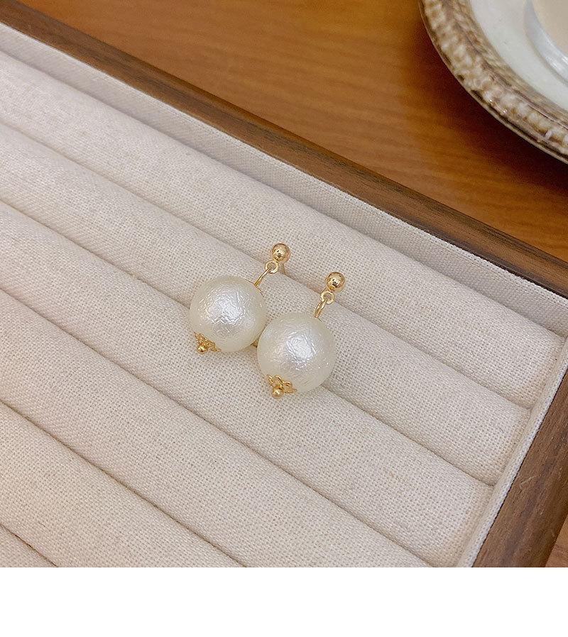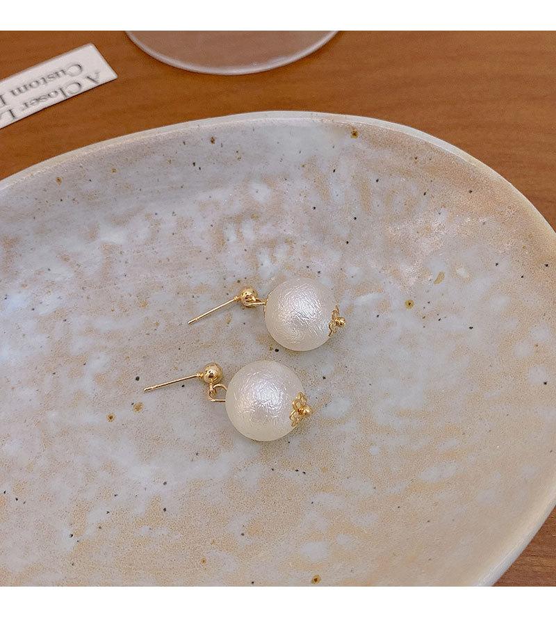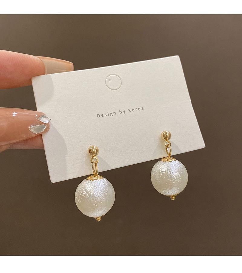 Pendientes de perlas de algodón con aguja de plata 925 para mujer, estilo retro nicho, con temperamento de celebridad de Internet, joyería francesa suave y cálida.