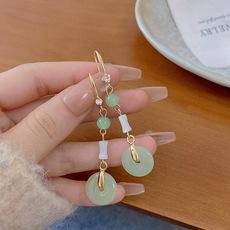 Nuevos pendientes de borla de calcedonia de imitación retro chinos, temperamento femenino, versátiles, largos, con gancho para la oreja, pendientes de red con personalidad de celebridad.