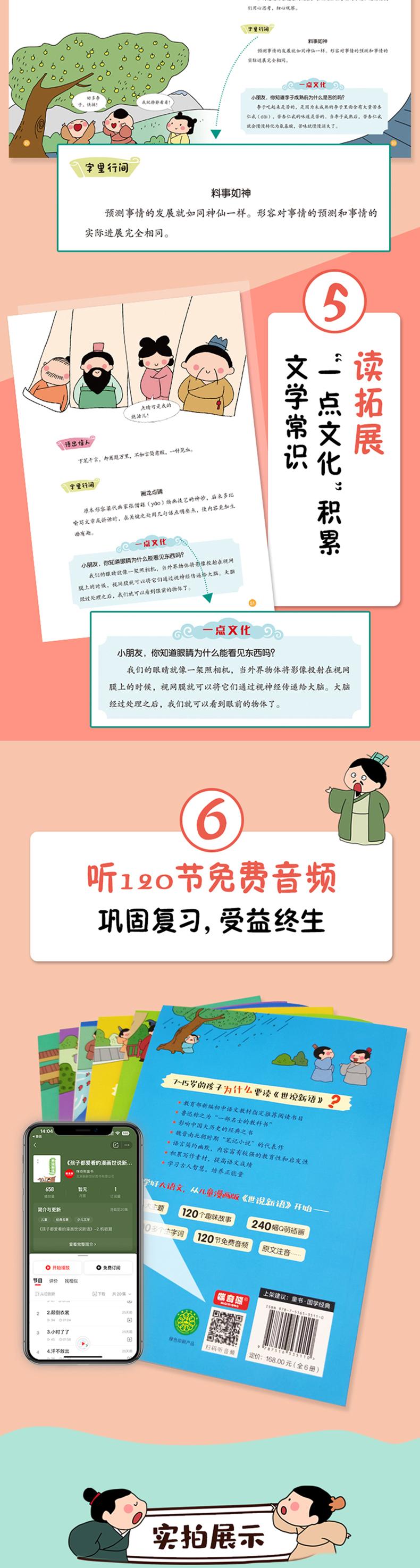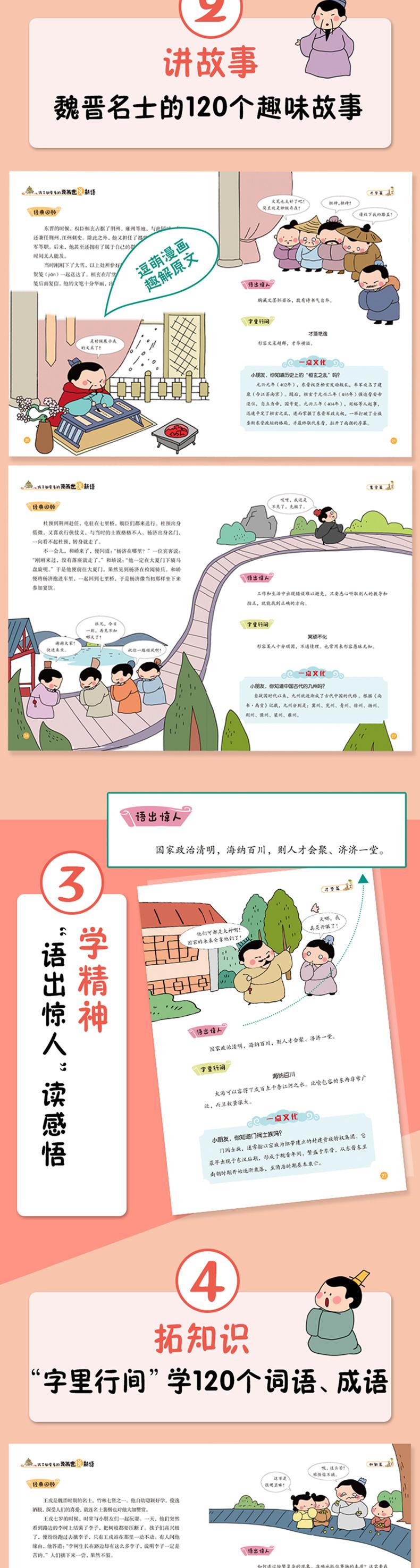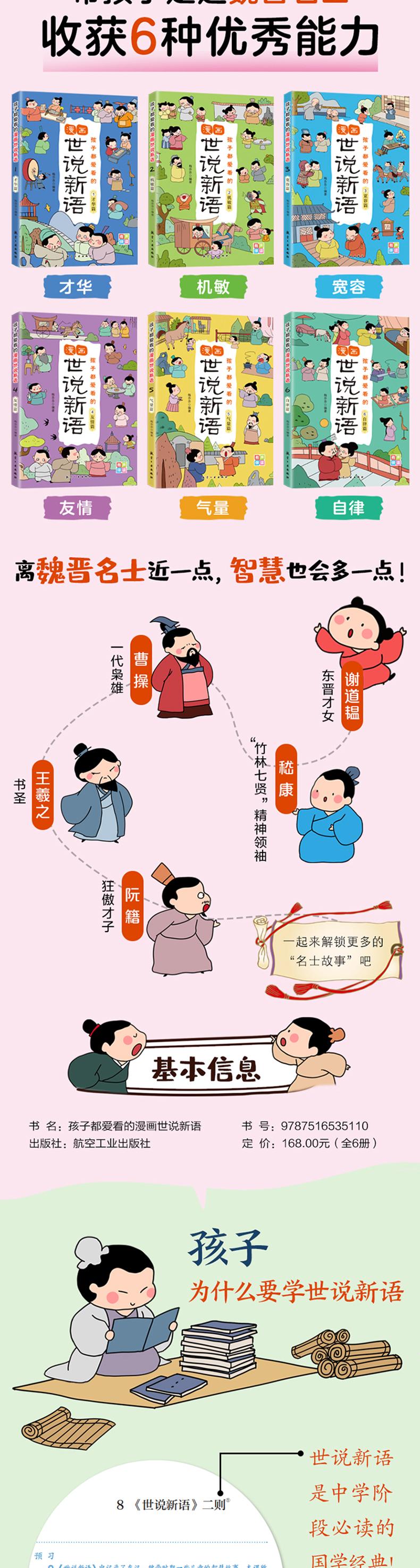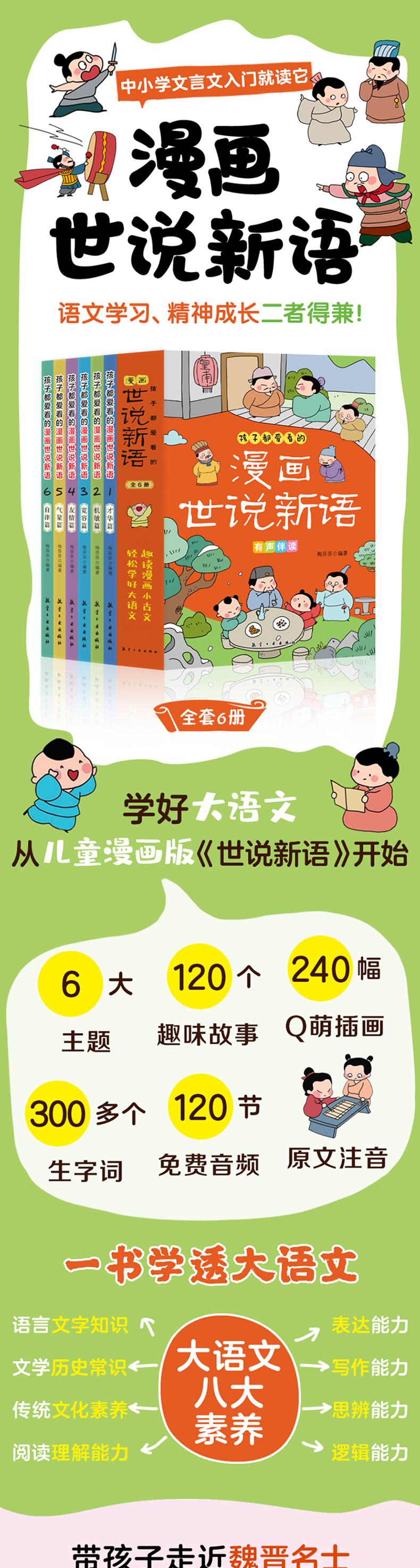 A los niños les encanta leer el cómic Shishuo Xinyu, un conjunto completo de 6 volúmenes de libros extracurriculares para que los estudiantes de primaria lean clásicos chinos antiguos.