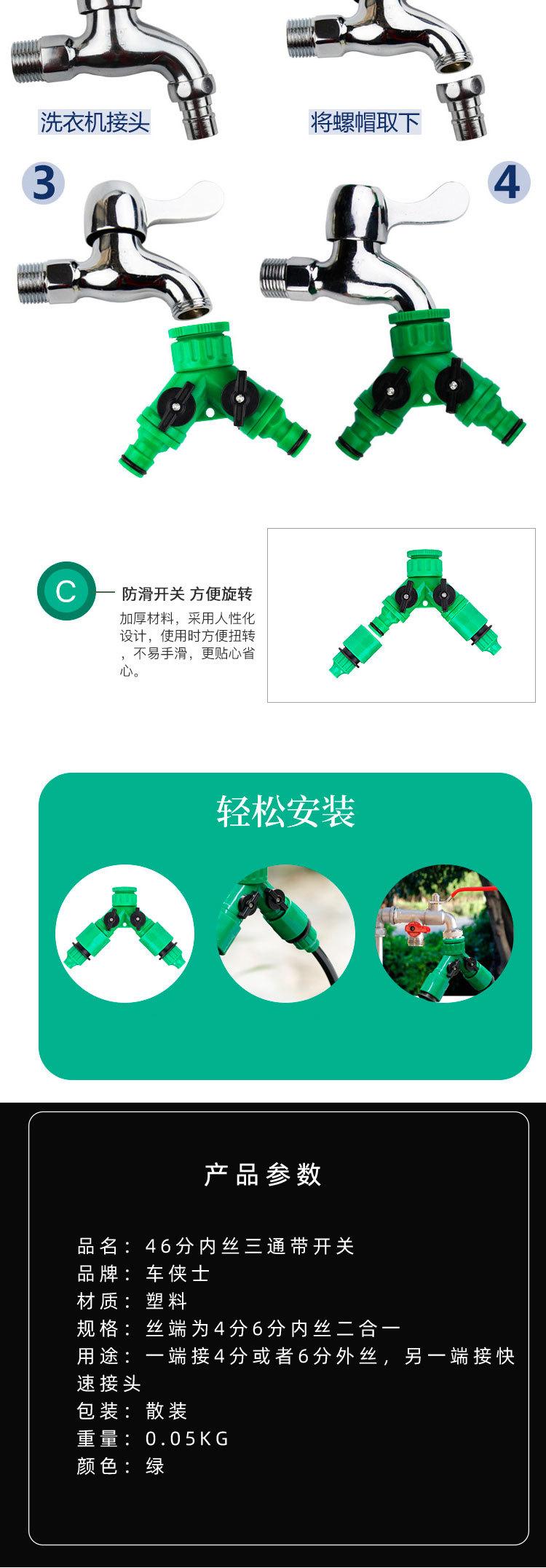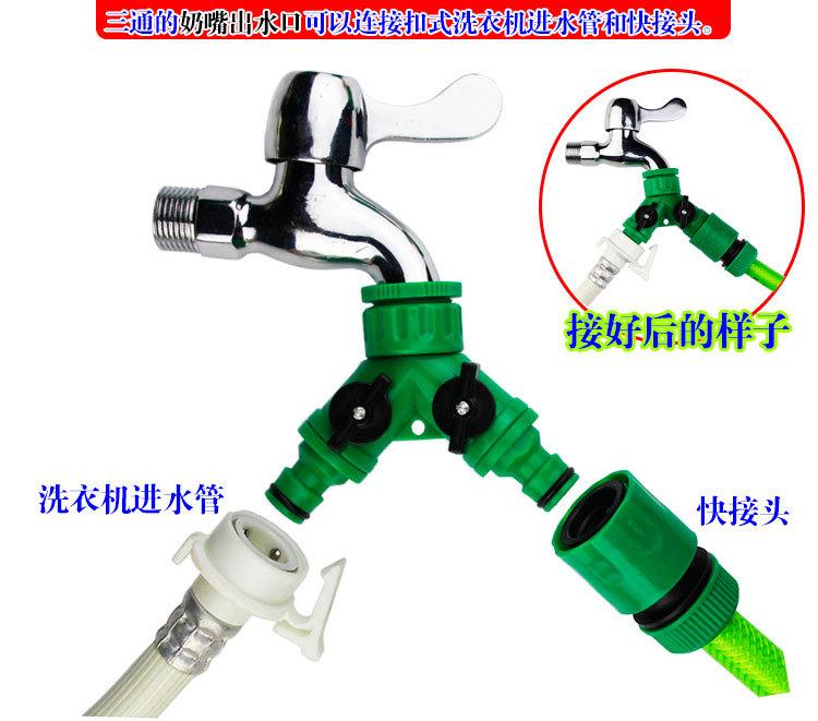 Conector de tubería de agua para lavado de automóviles, 4 puntos, 6 puntos, cable interior, boquilla de tres vías con interruptor, adaptador de plástico multifuncional, accesorios