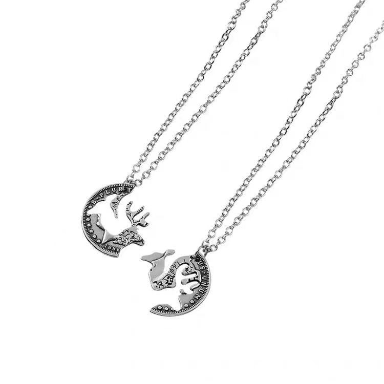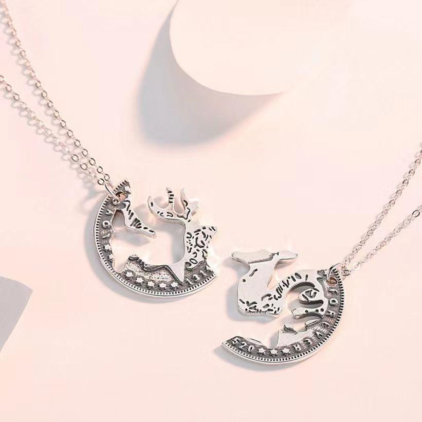 En el camino, un collar de pareja de ciervos para hombres y mujeres, un par de novias de moda simple con personalidad de temperamento, collar colgante con costuras