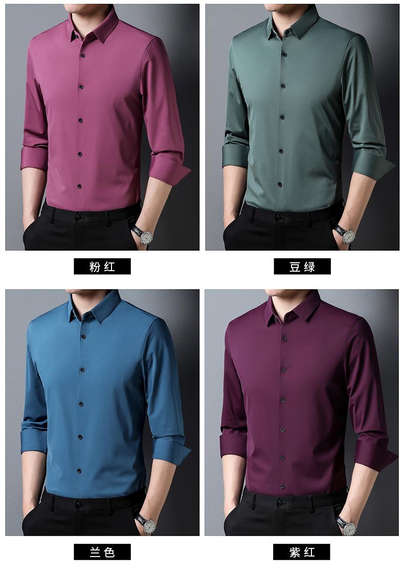Camisa sin rastro para hombre de primera calidad, de primavera 2023, de manga larga, muy elástica, informal, para hombres de mediana edad y jóvenes, de color sólido