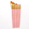 Pinceles de Nailon Transfronterizos 10 Pinceles Combinados de Pelo de Nailon con Mango Rosa Mate Juego de Pinceles para Óleo Venta al por Mayor en Stock