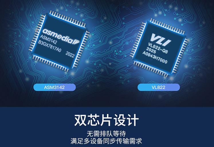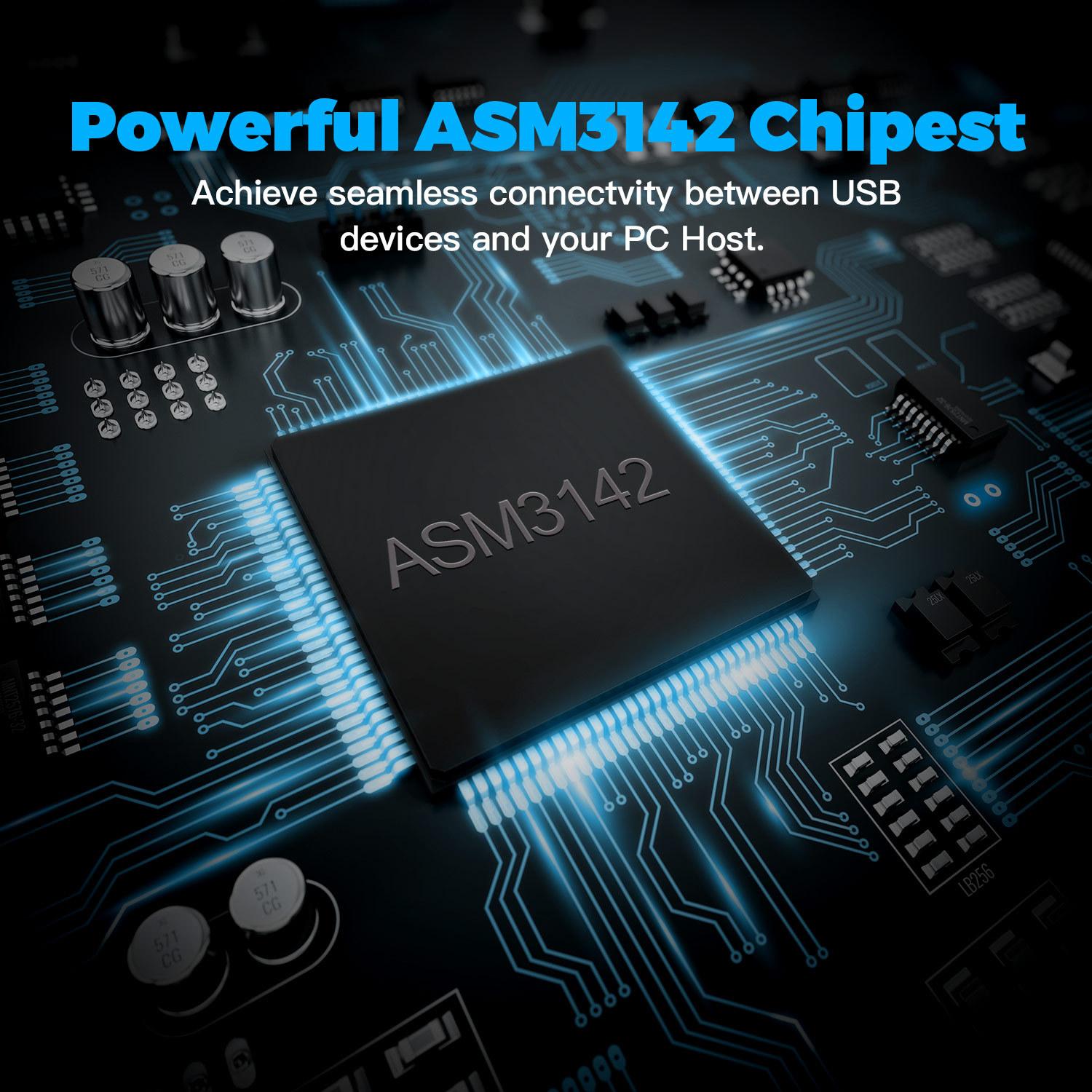 Velocidad de transmisión de alta velocidad: 1 puerto USB comparte una velocidad de transmisión de 10 Gbps, y los 3 puertos restantes comparten otra velocidad de transmisión total de 10 Gbps, hasta 20 Gbps. Cada puerto admite transferencia de datos de hasta 10 Gbps cuando se usa solo.