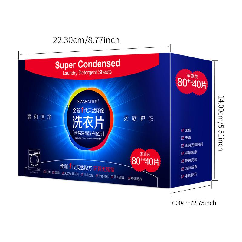 Lámina de lavado dulce y suave para ropa limpia especial para familia baja espuma fácil de flotar protege el color de la ropa 120 en caja mayoreo de fábrica