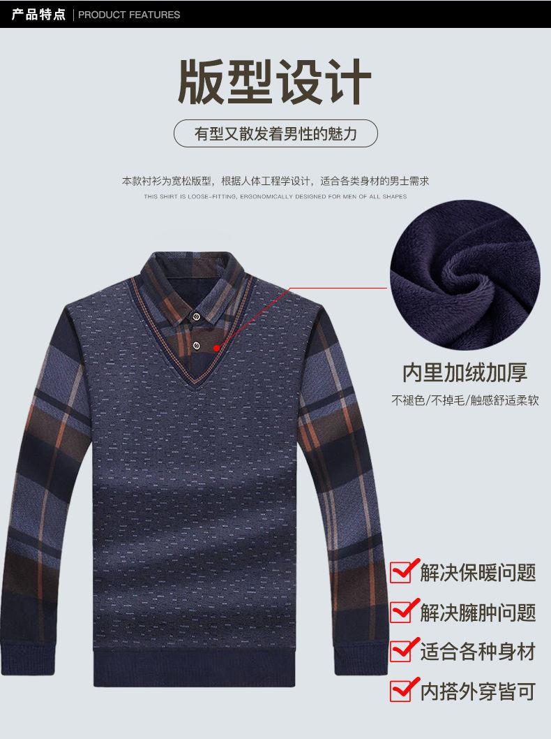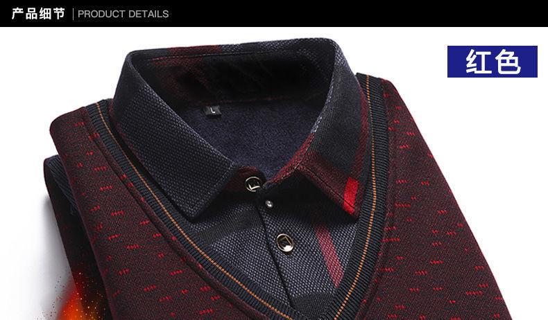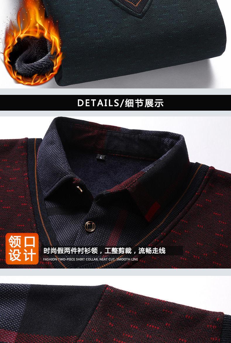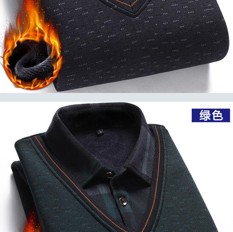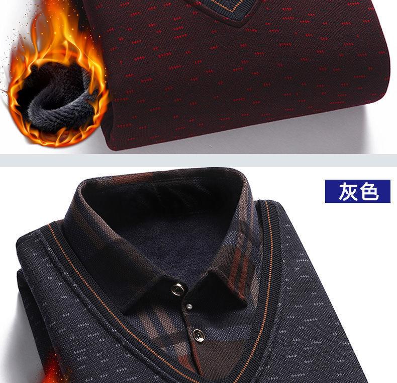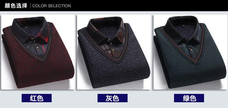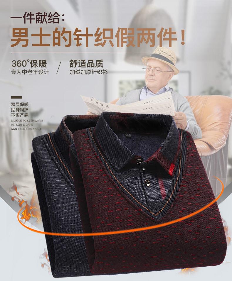 | Suéter de cuello camisero falso de dos piezas [regordete y grueso] para hombres de mediana edad y mayores, suéter de punto básico, ropa interior. |