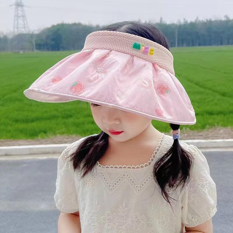 Sombrero de sol para niños, sombrero de sol de verano para niñas, lindo sombrero de sol para bebés con protección UV, ala grande, transpirable, con la parte superior vacía.