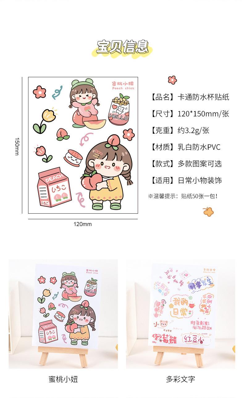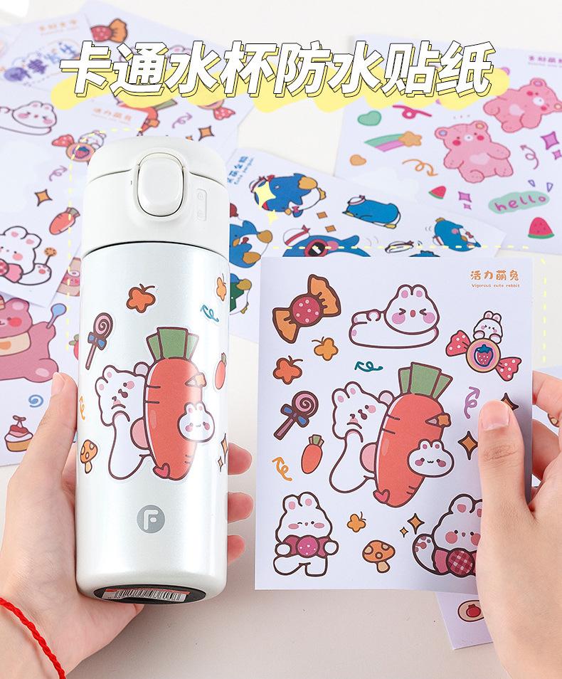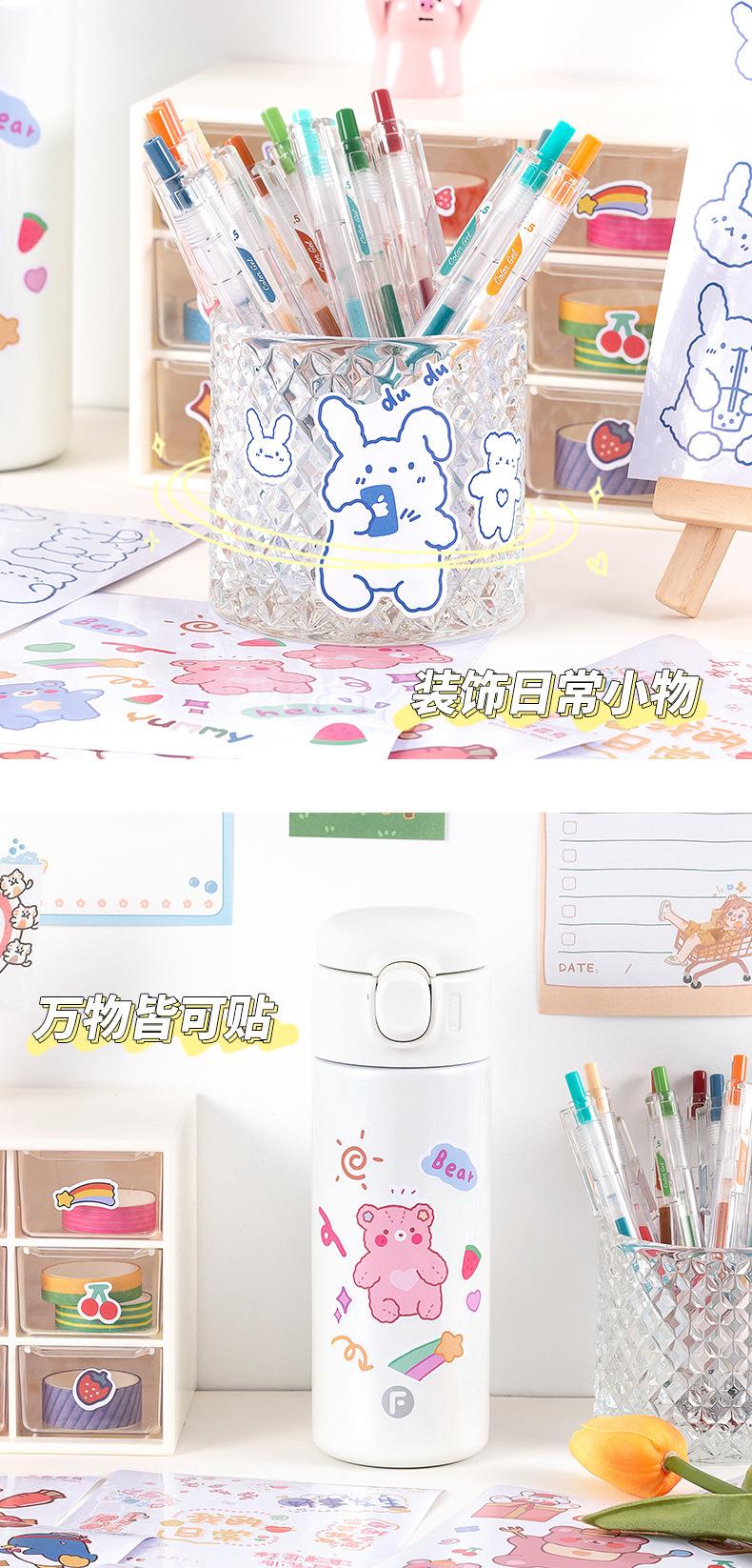 Pegatina de cuenta de mano con forma de corazón de niña linda, decoración de oso de viento, patrón de dibujos animados, pegatina de cuenta de mano con taza térmica, 10