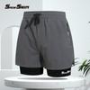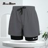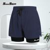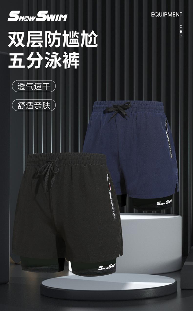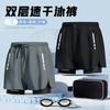 Traje de baño bóxer para hombre de doble capa para adulto de secado rápido anti-vergüenza pantalones de playa equipo de natación para aguas termales