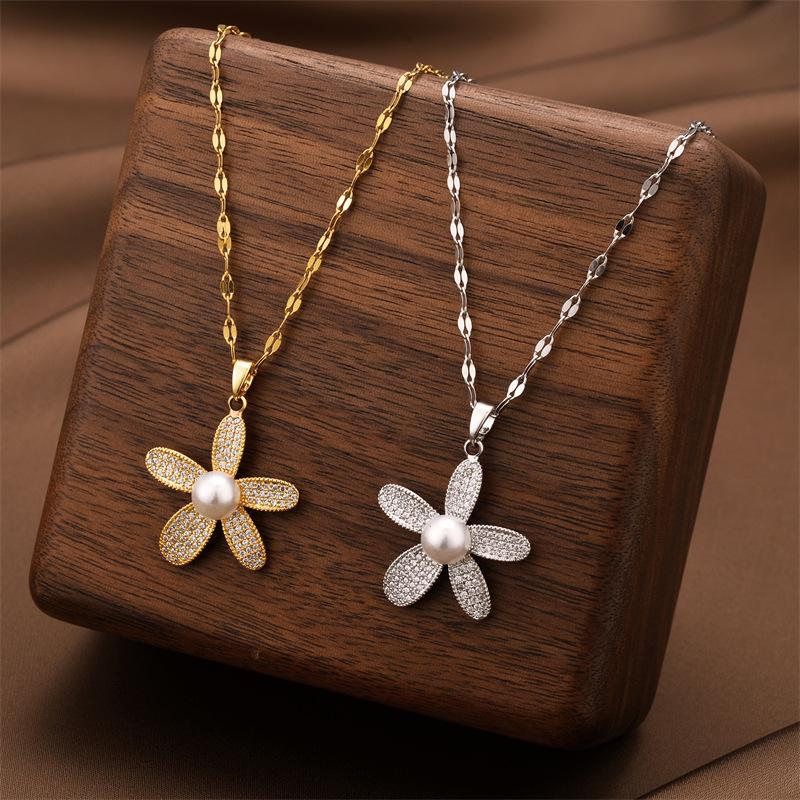 Nuevo y elegante collar de perlas de girasol, chapado en oro real, moderno, combina con todo, ligero, de lujo, de acero de titanio, accesorios femeninos
