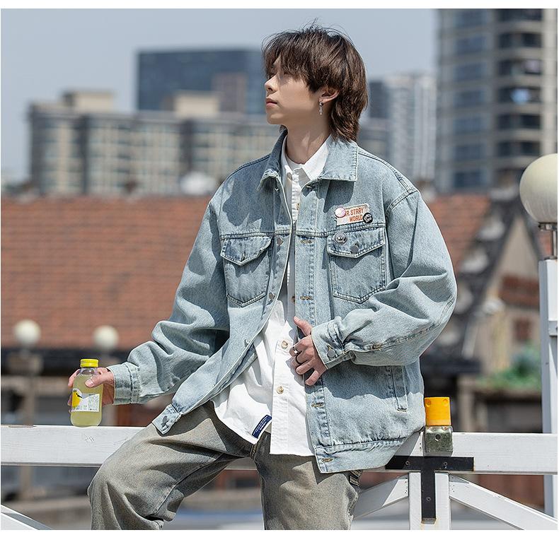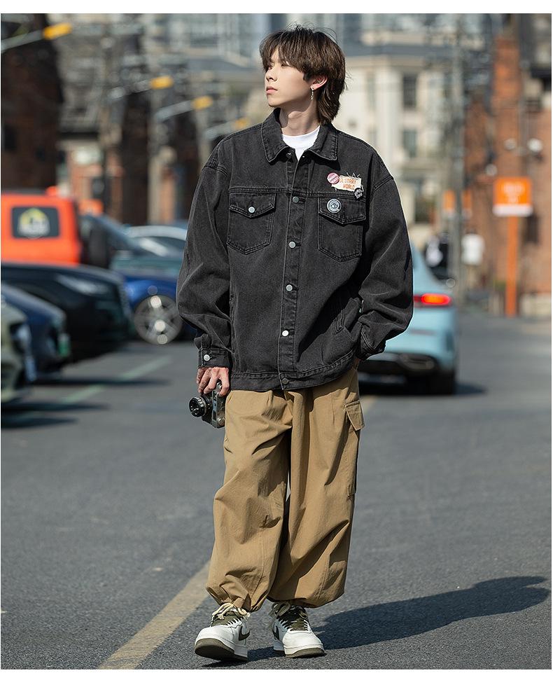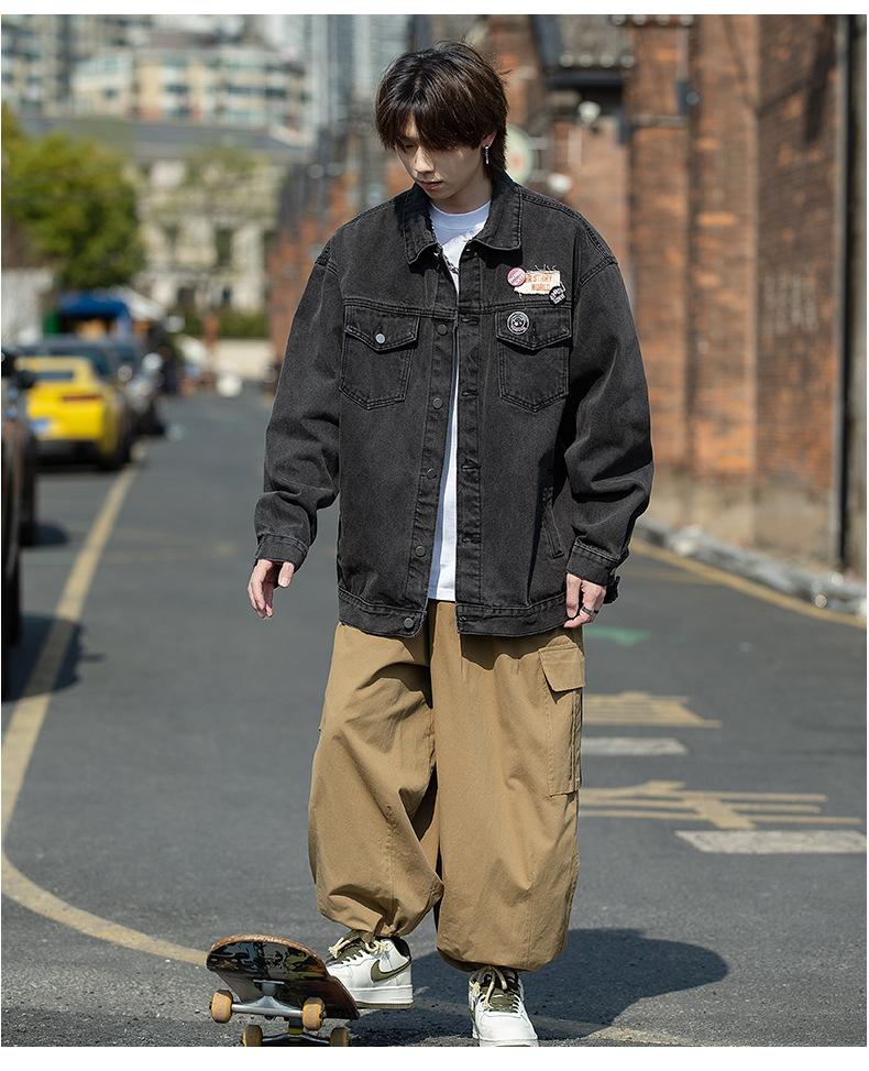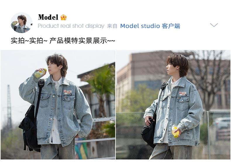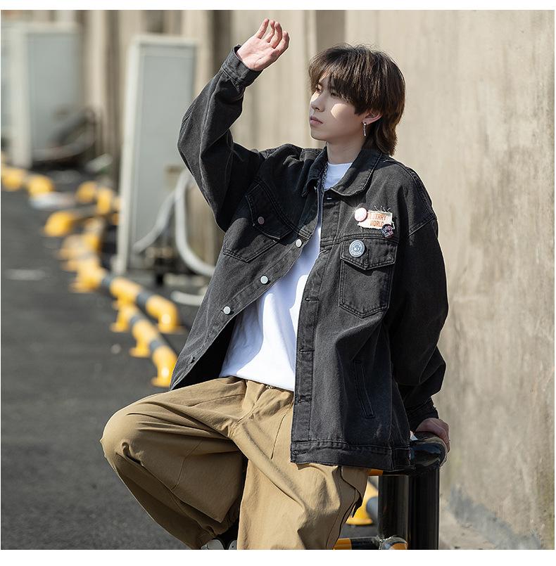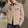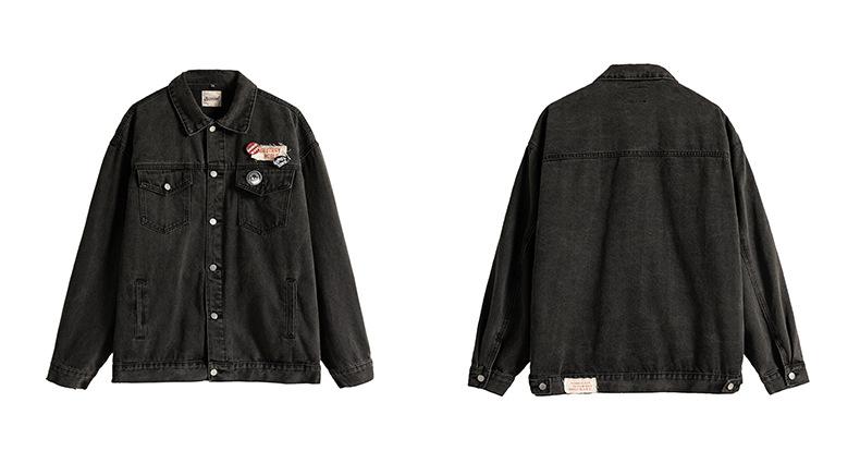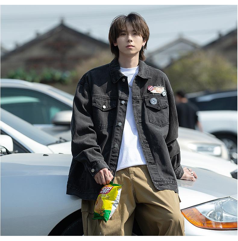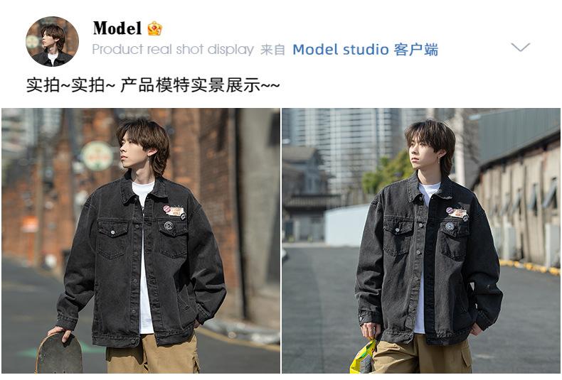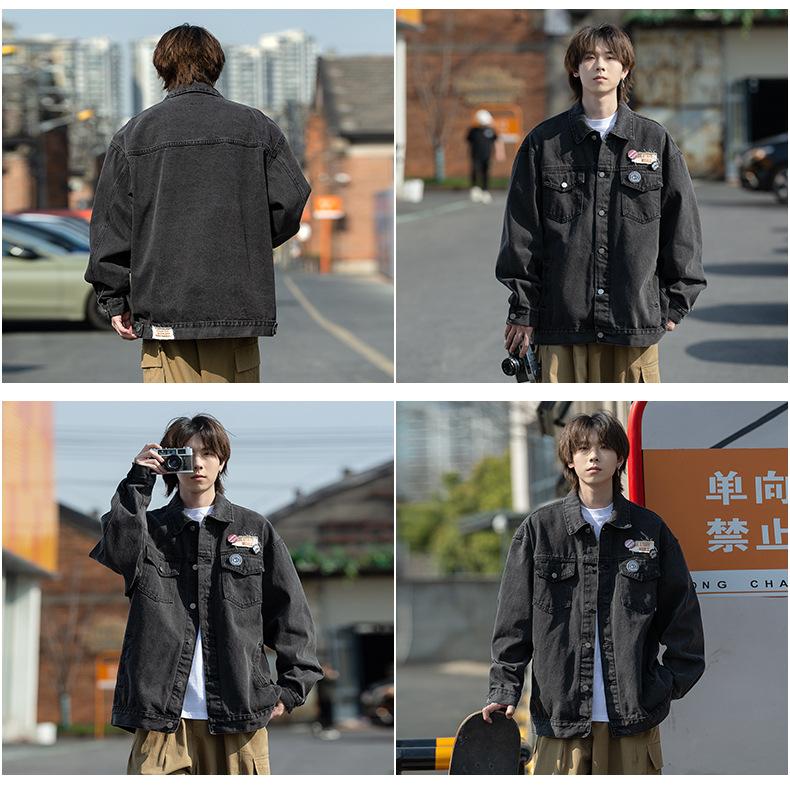 Chaqueta vaquera de solapa negra de primavera y otoño de comercio exterior para hombre, chaqueta informal holgada de moda coreana, ropa de trabajo resistente al desgaste.