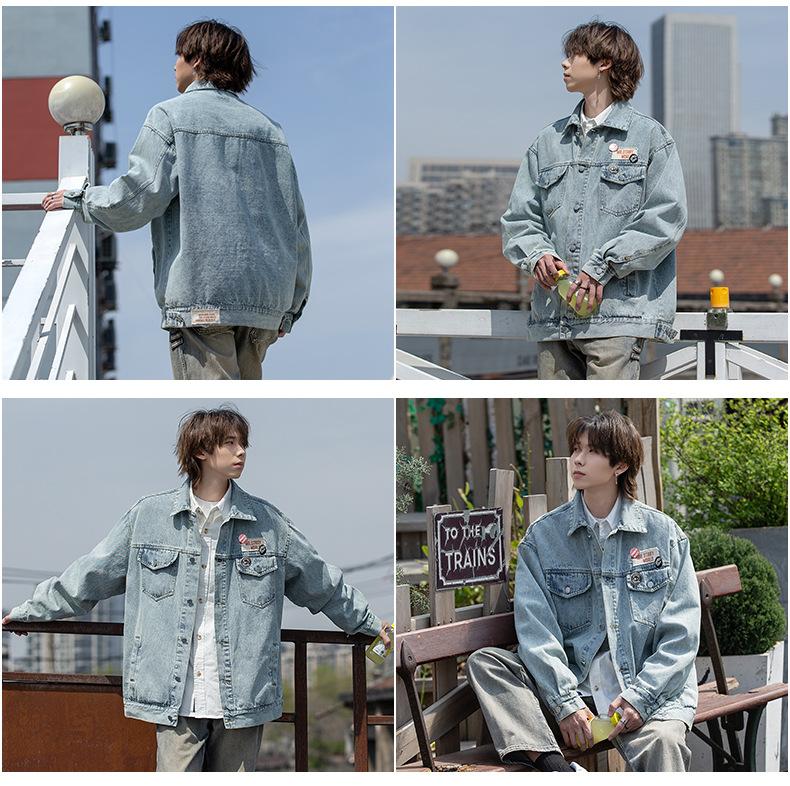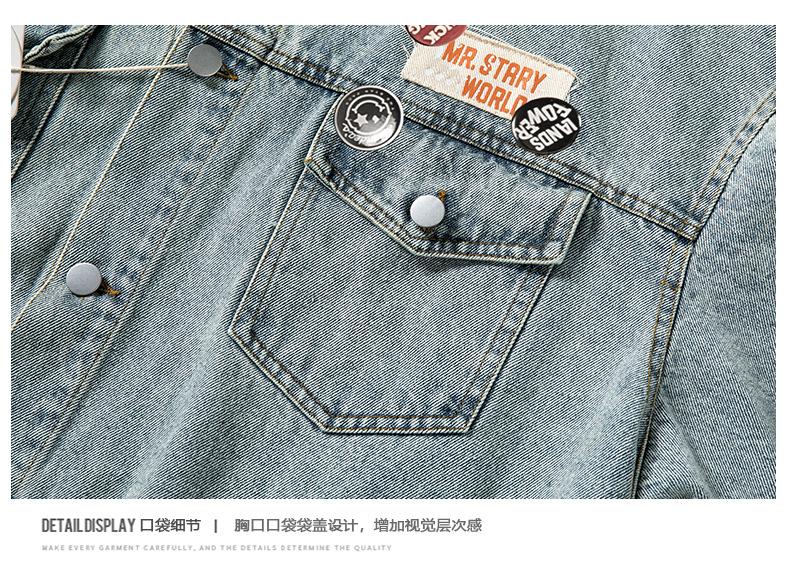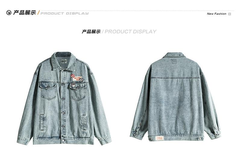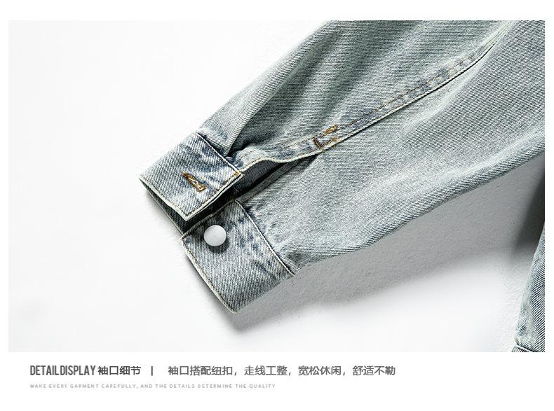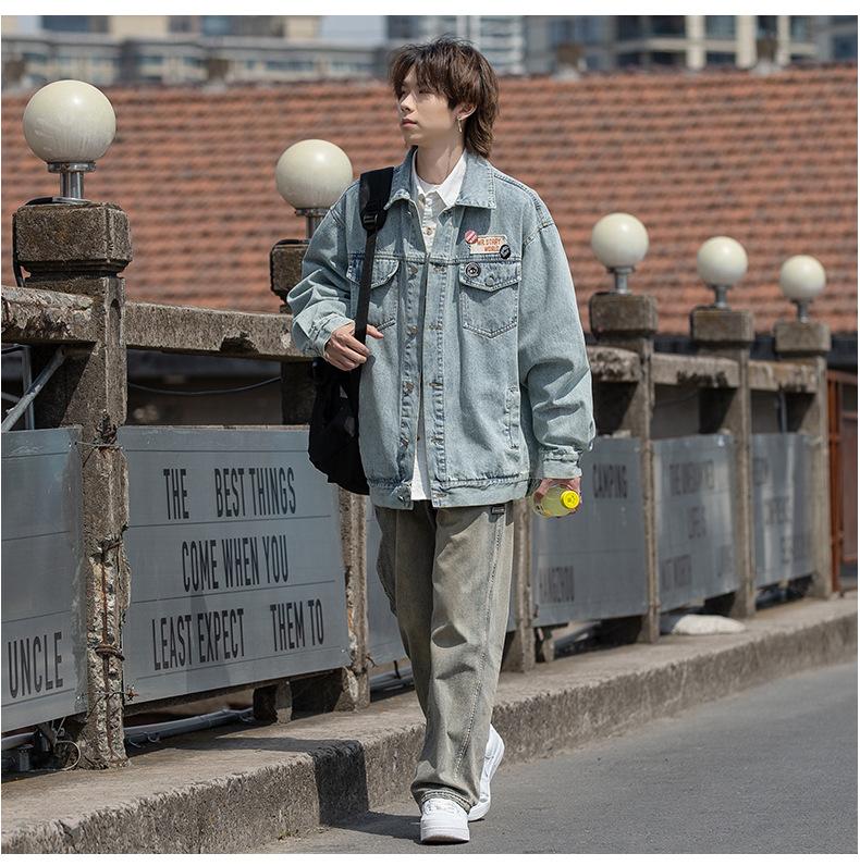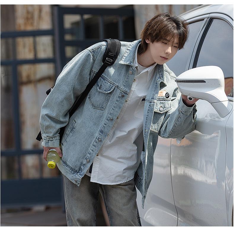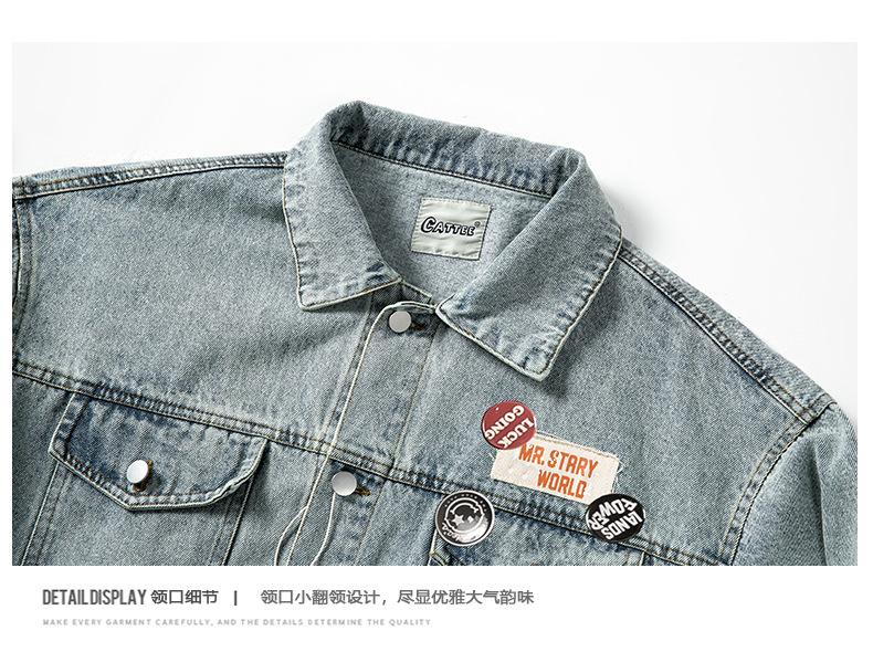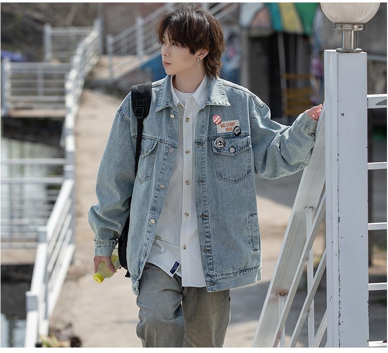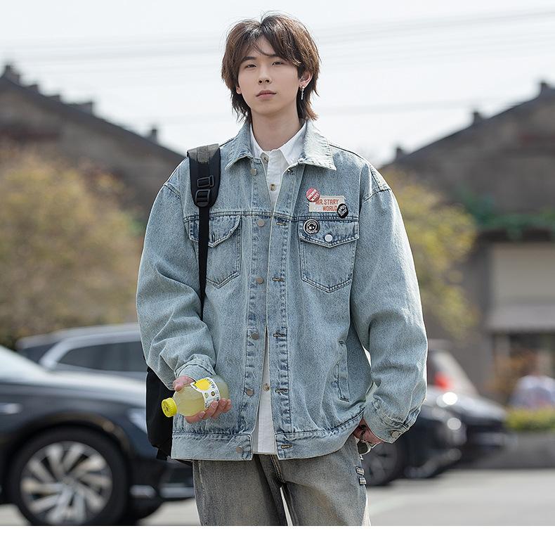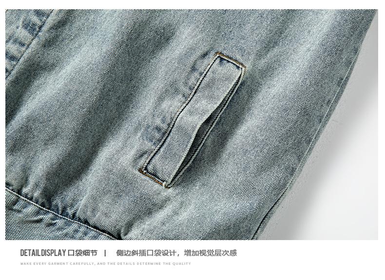 Chaqueta vaquera de solapa negra de primavera y otoño de comercio exterior para hombre, chaqueta informal holgada de moda coreana, ropa de trabajo resistente al desgaste.