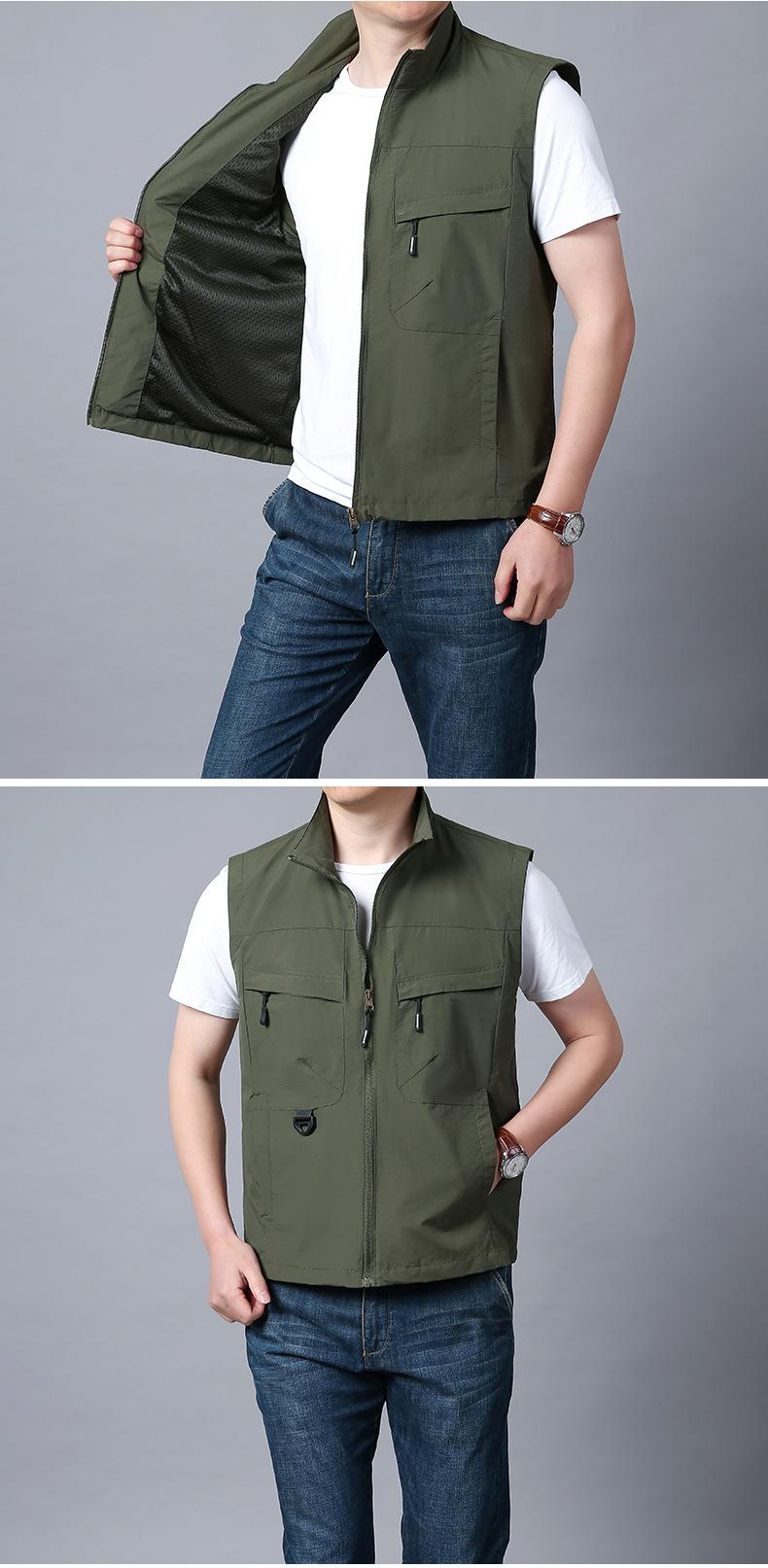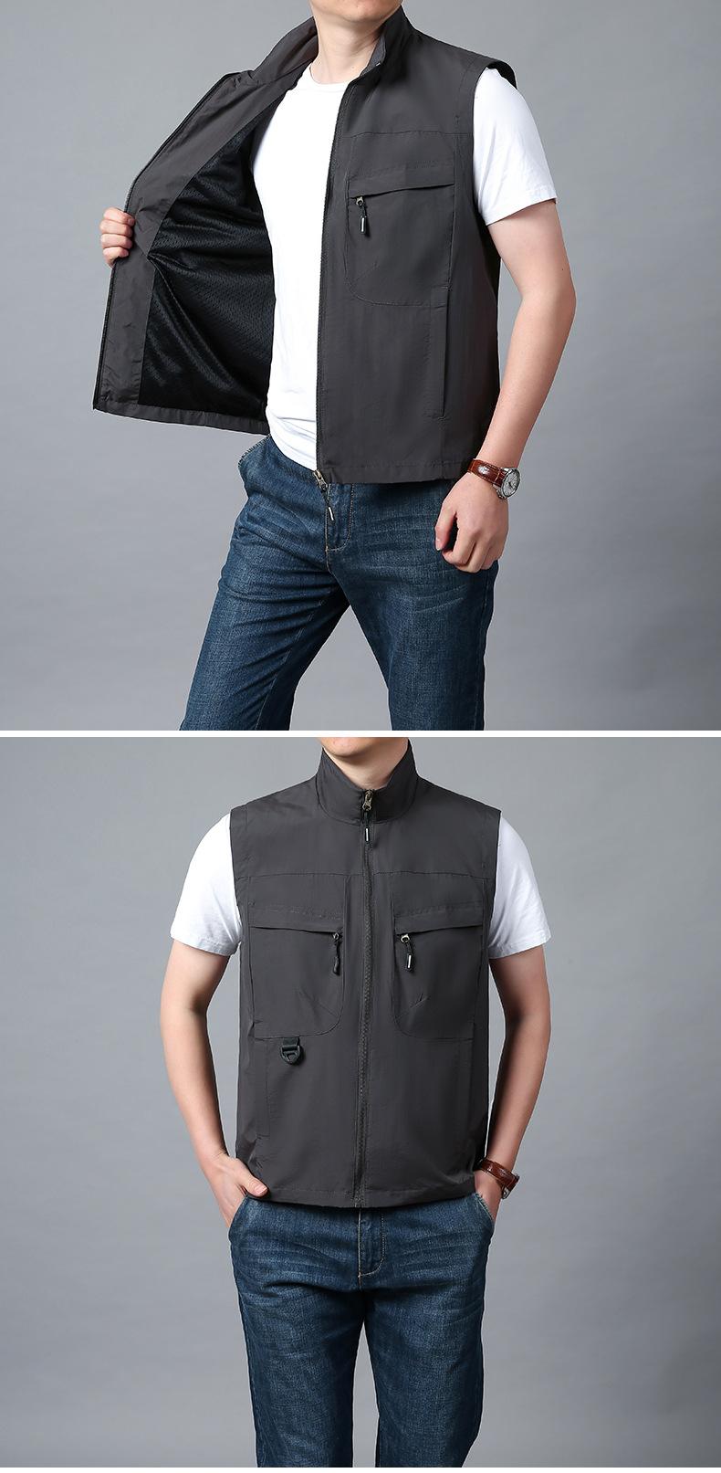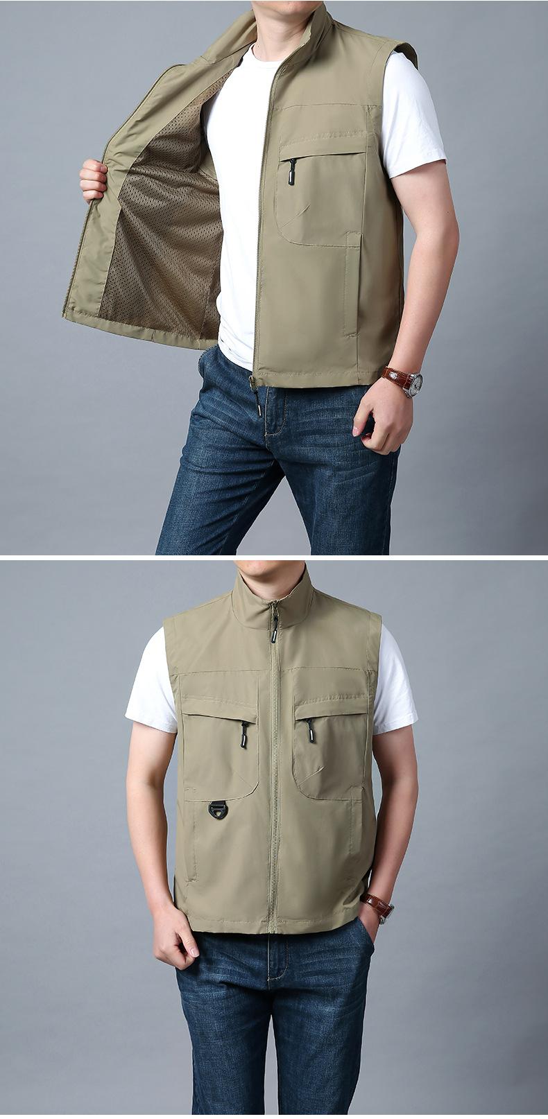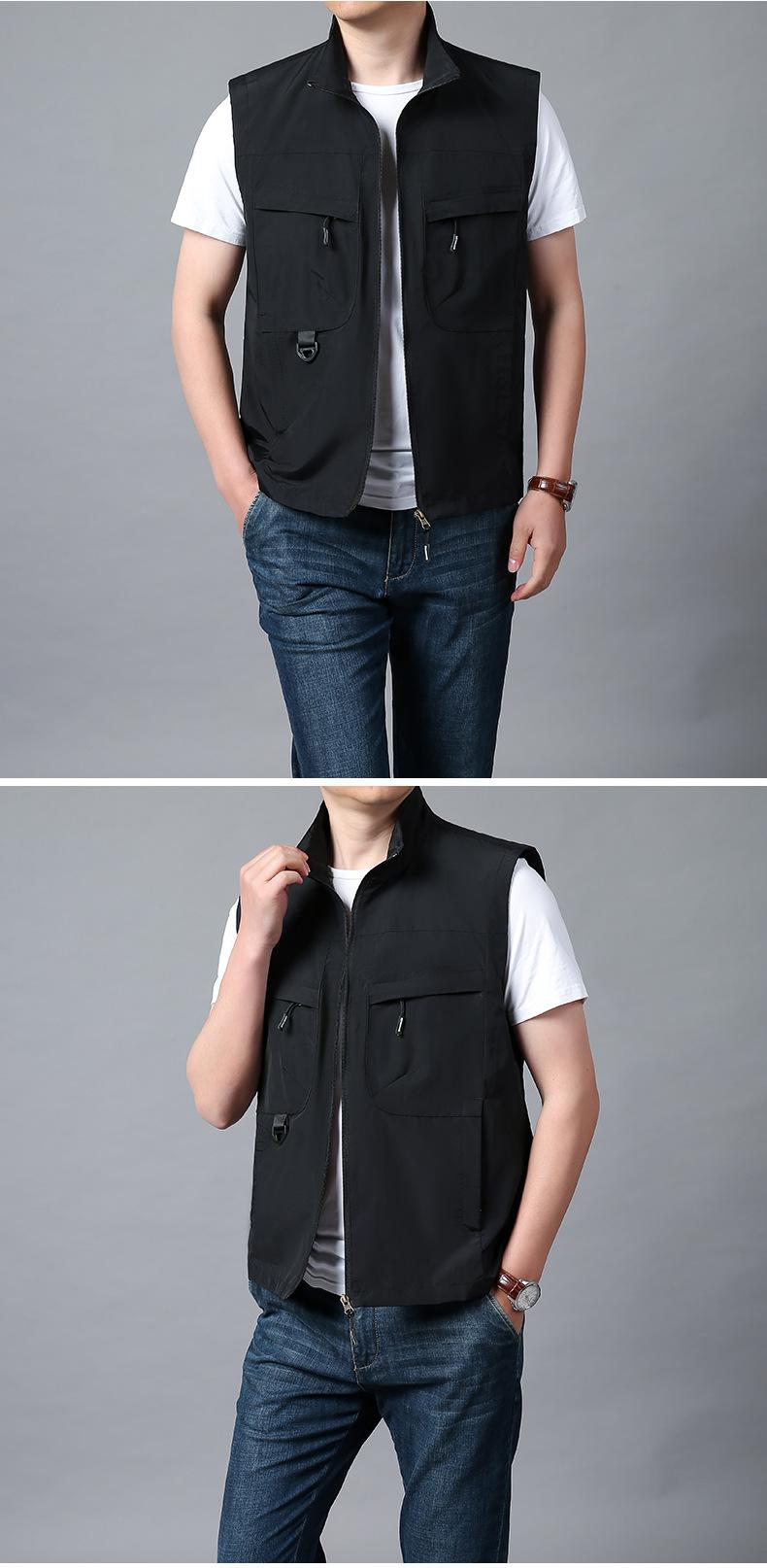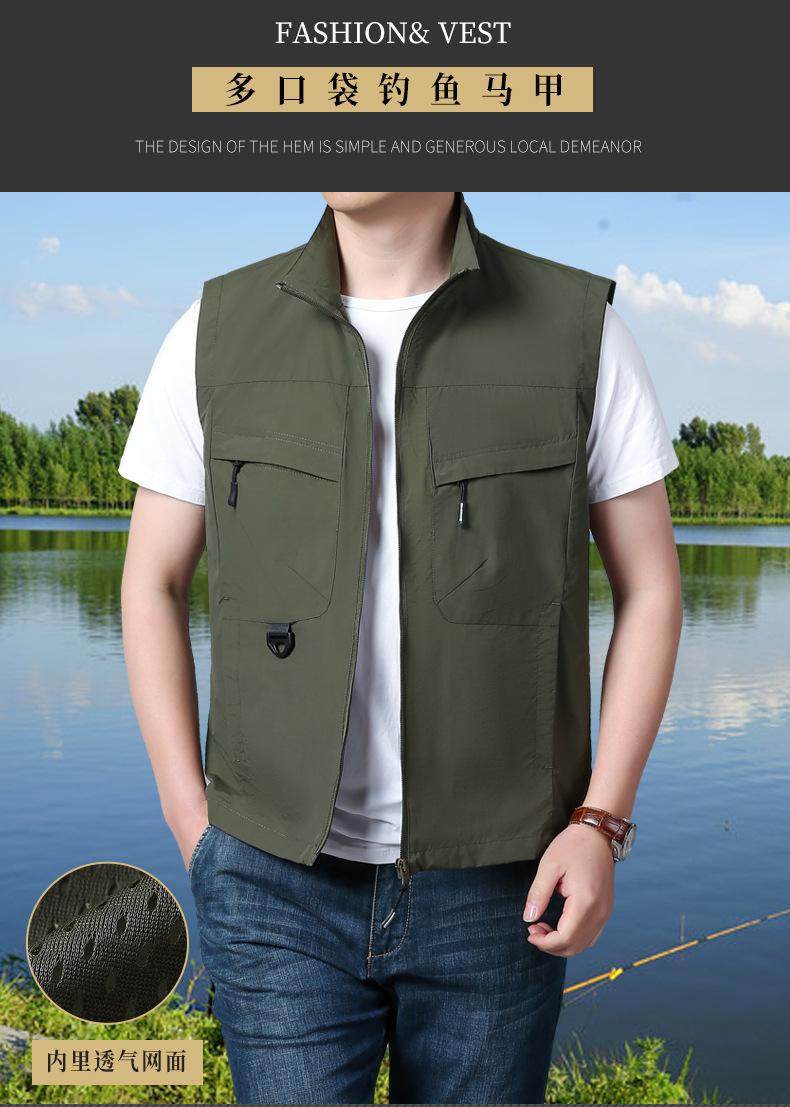 Chaleco deportivo fino para exteriores para hombre, ropa de trabajo de secado rápido, chaleco de pesca holgado de talla grande para hombres jóvenes y de mediana edad.