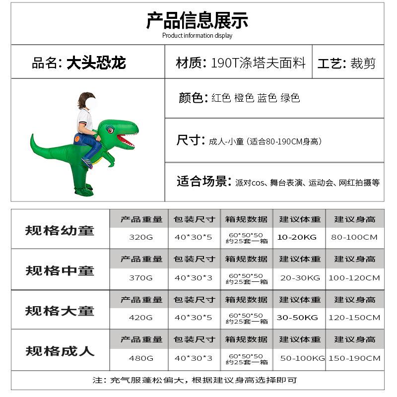 Ropa Inflable de Dinosaurio de Cabeza Grande para Adultos Transfronteriza Ropa de Actuación para Niños Fiesta Tiranosaurio Rex Ropa de Actuación Ropa Creativa para Jardín de Niños