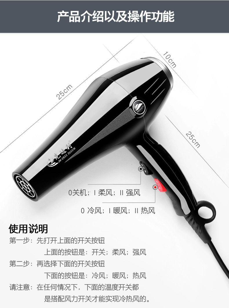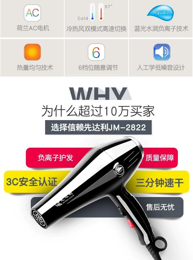 Secadora de Pelo Xian Dali 2822 para Uso Doméstico, Cuidado del Cabello con Iones Negativos de Alta Potencia, Secado Rápido de Salón, Ventas Directas de Fábrica, Gran Flujo de Aire