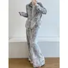 Pijamas de felpa de otoño e invierno para mujer, bonito cárdigan dulce de forro polar coral, talla grande, ropa de casa cálida para chica gordita
