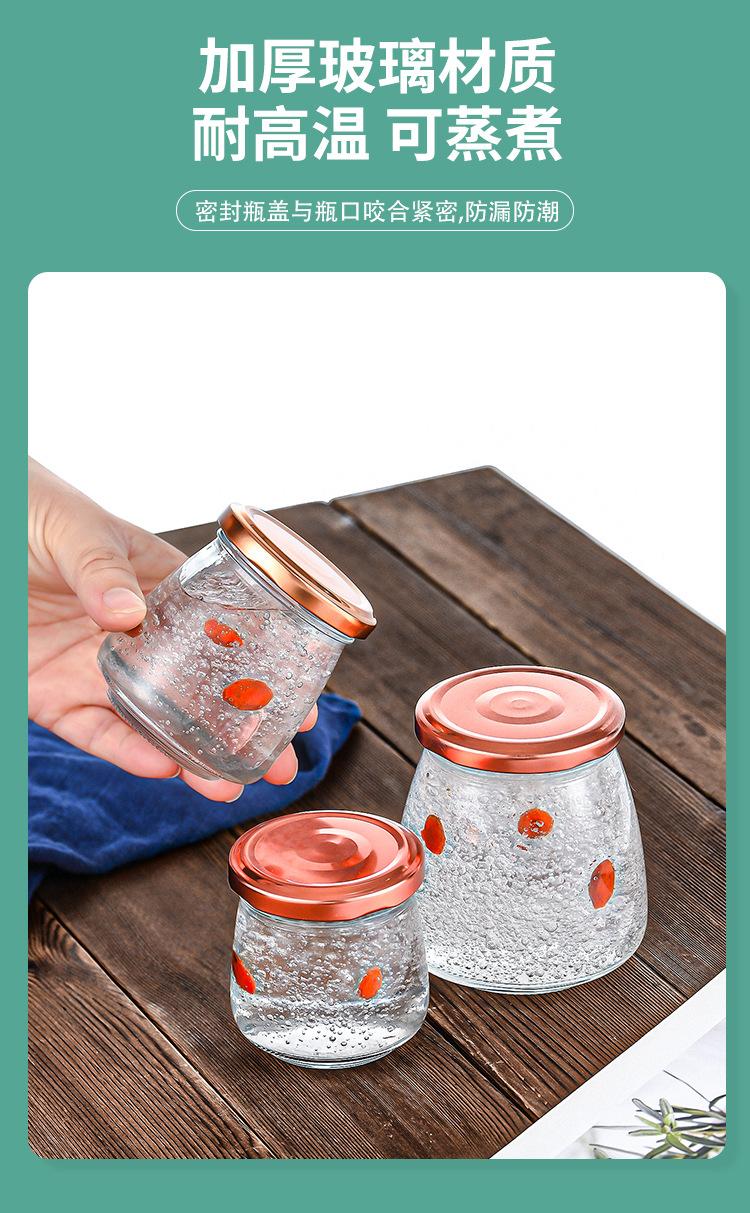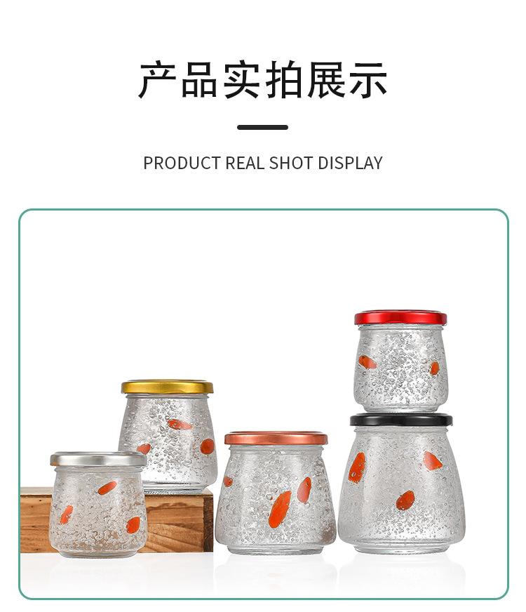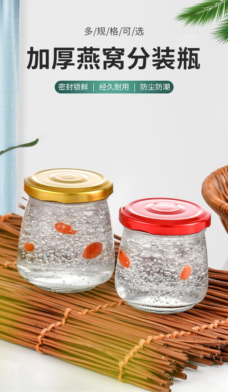 Venta al por mayor, subbotella de nido de pájaro guisado fresco, mermelada de miel instantánea, botella de plástico sellada, botella de vidrio transparente, pantalla de seda resistente a altas temperaturas