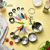 Juego de herramientas para hornear, cuchara medidora arcoíris creativa, taza medidora de plástico, juego de 8 piezas, cesta para lavar verduras multifunción, colador de polvo