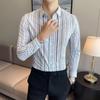 Camisa a rayas para hombre, estilo informal de negocios, de manga larga, de alta gama, para primavera y otoño, sin planchado, ajustada, de alta gama.