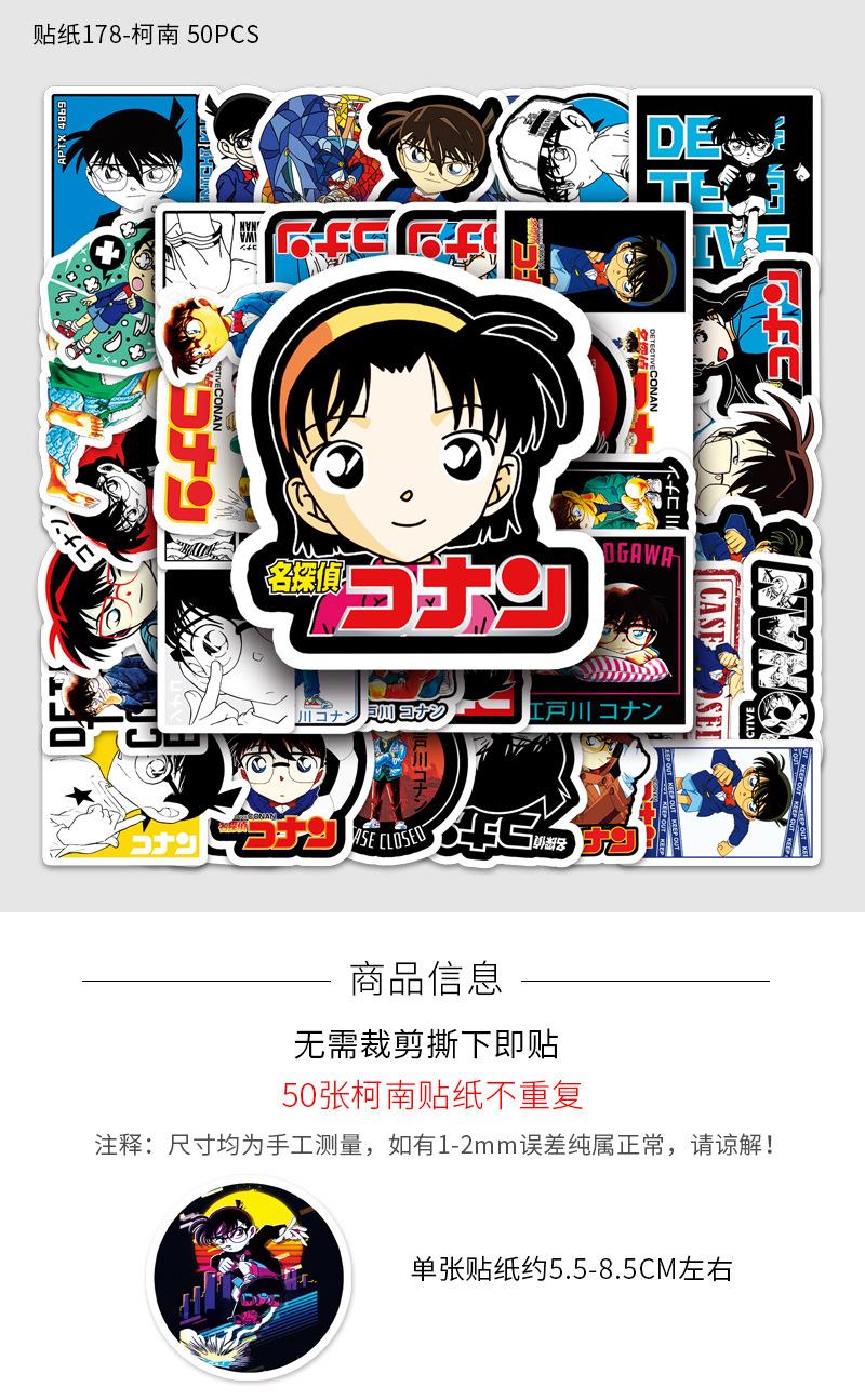 50 pegatinas de dibujos animados de Detective Conan, grafitis, personalidad, equipaje, portátil, scooter y coche.