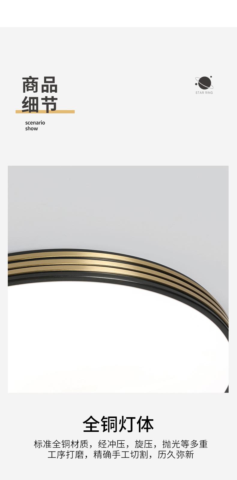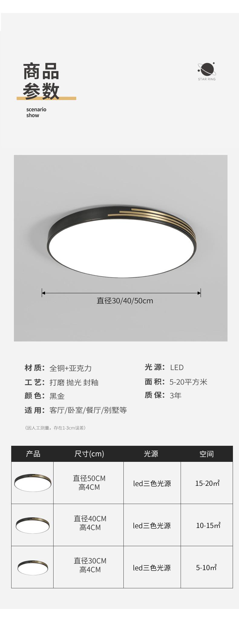 Lámpara de techo de cobre puro estilo americano led ultradelgada redonda sala de estar dormitorio lámpara cálida nórdica moderna simple lámparas de balcón