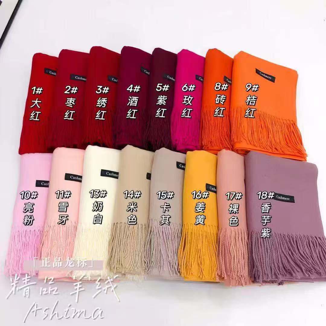 Bufanda Roja de Cachemira Imitación de Color Sólido para Otoño e Invierno para Reunión Anual para Mujer Invierno Gruesa Borla Aire Acondicionado Versátil Chal Cálido Fábrica