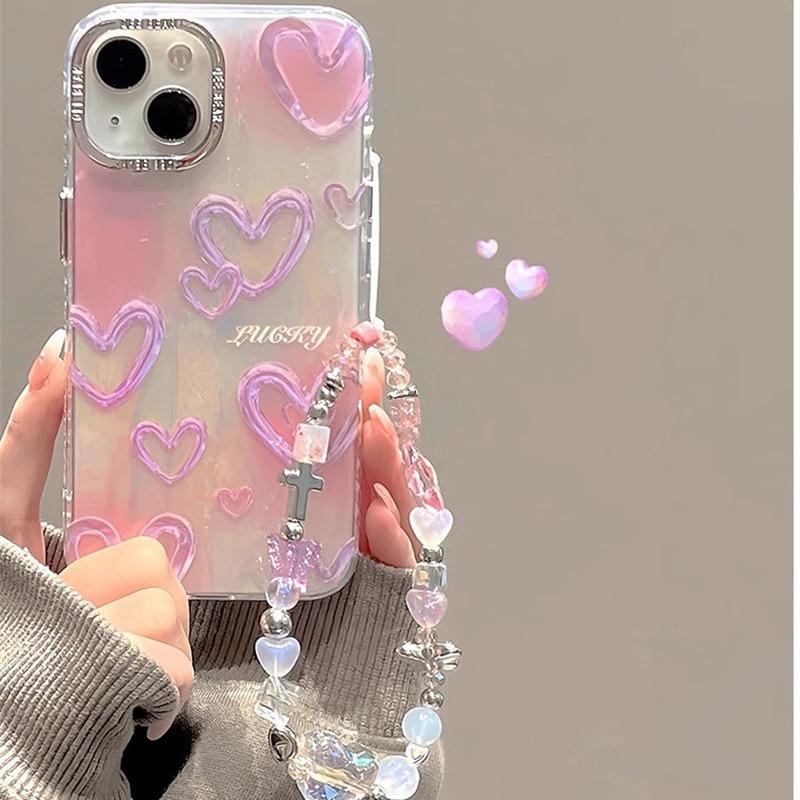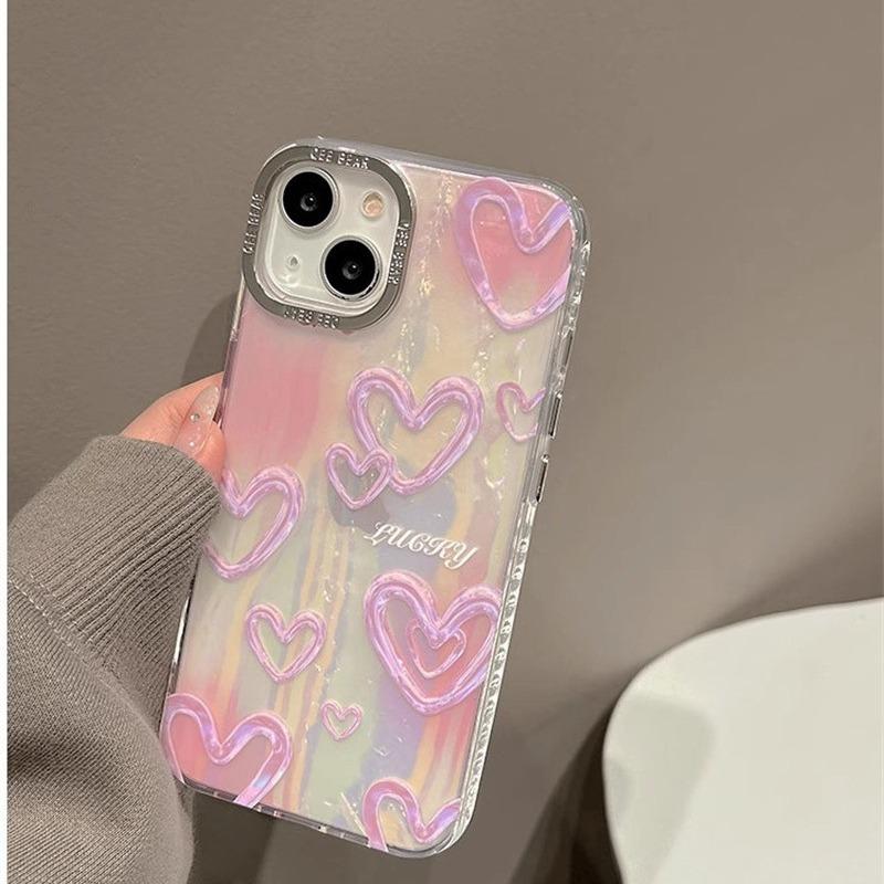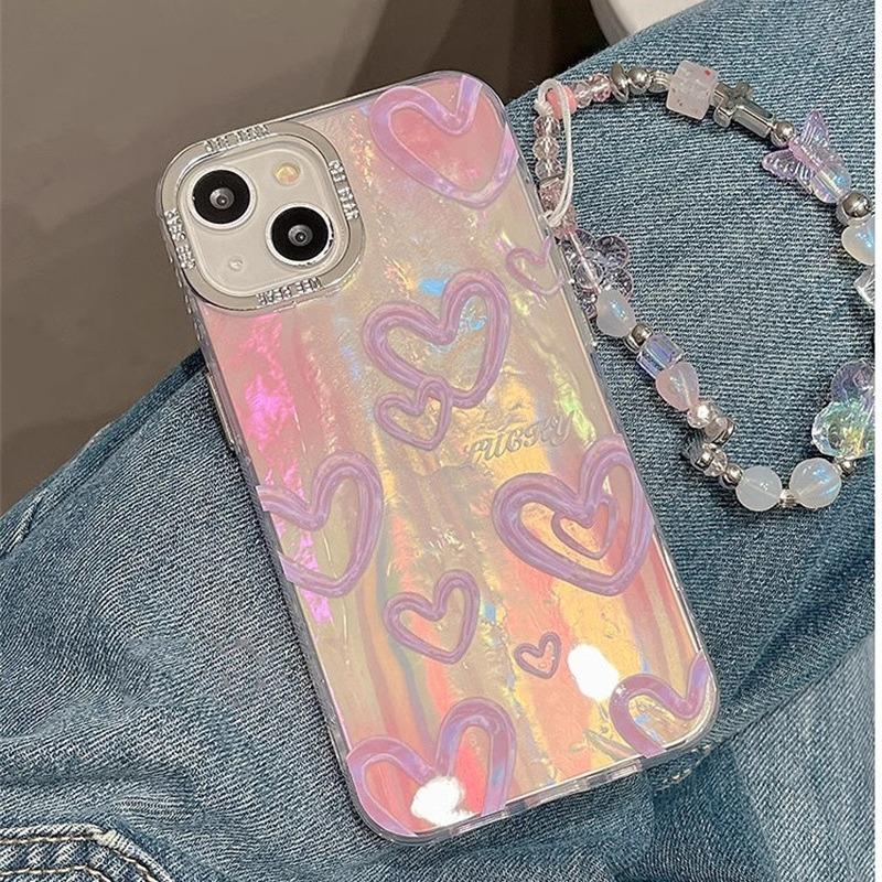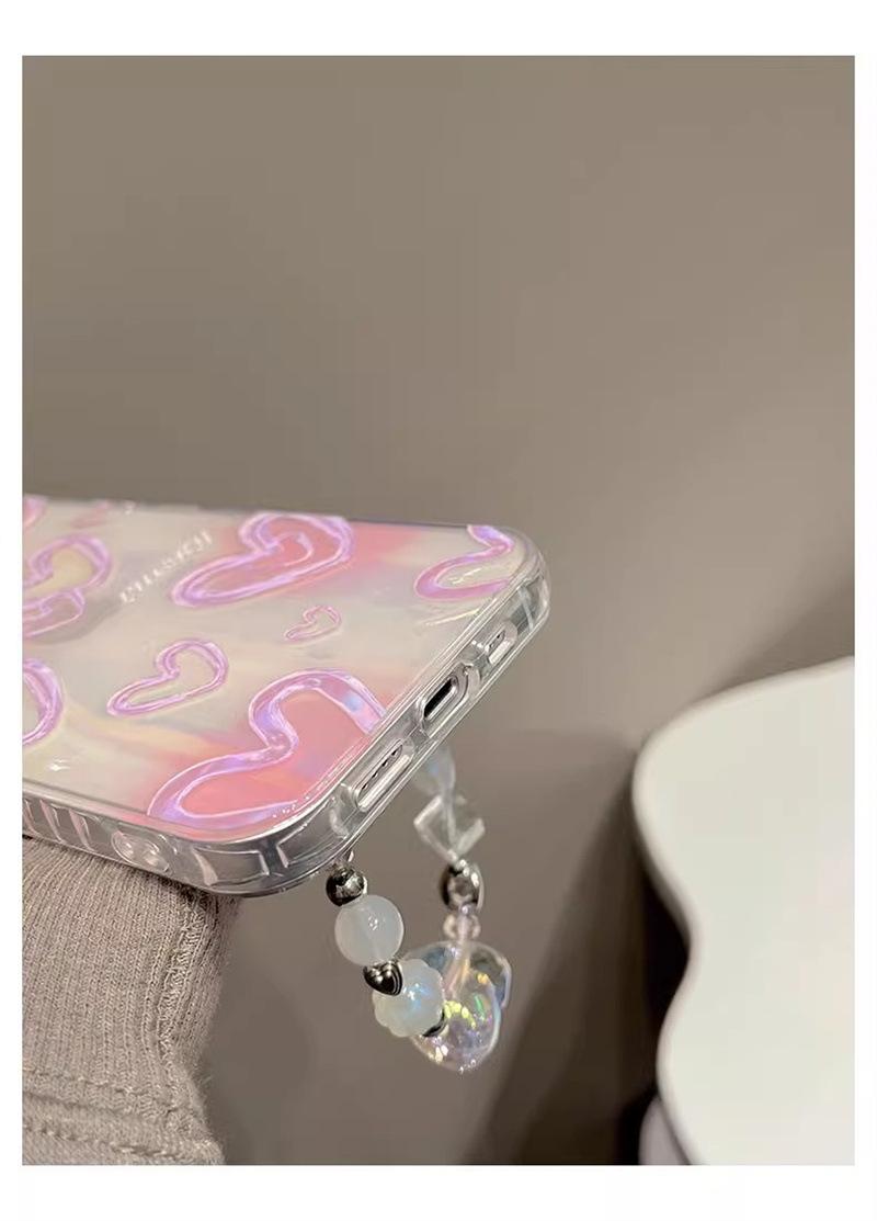 Adecuado para carcasa de teléfono móvil iPhone15 Apple 14promax Laser Love 13/12 cuerda portátil 11 hembra 15pro coreano
