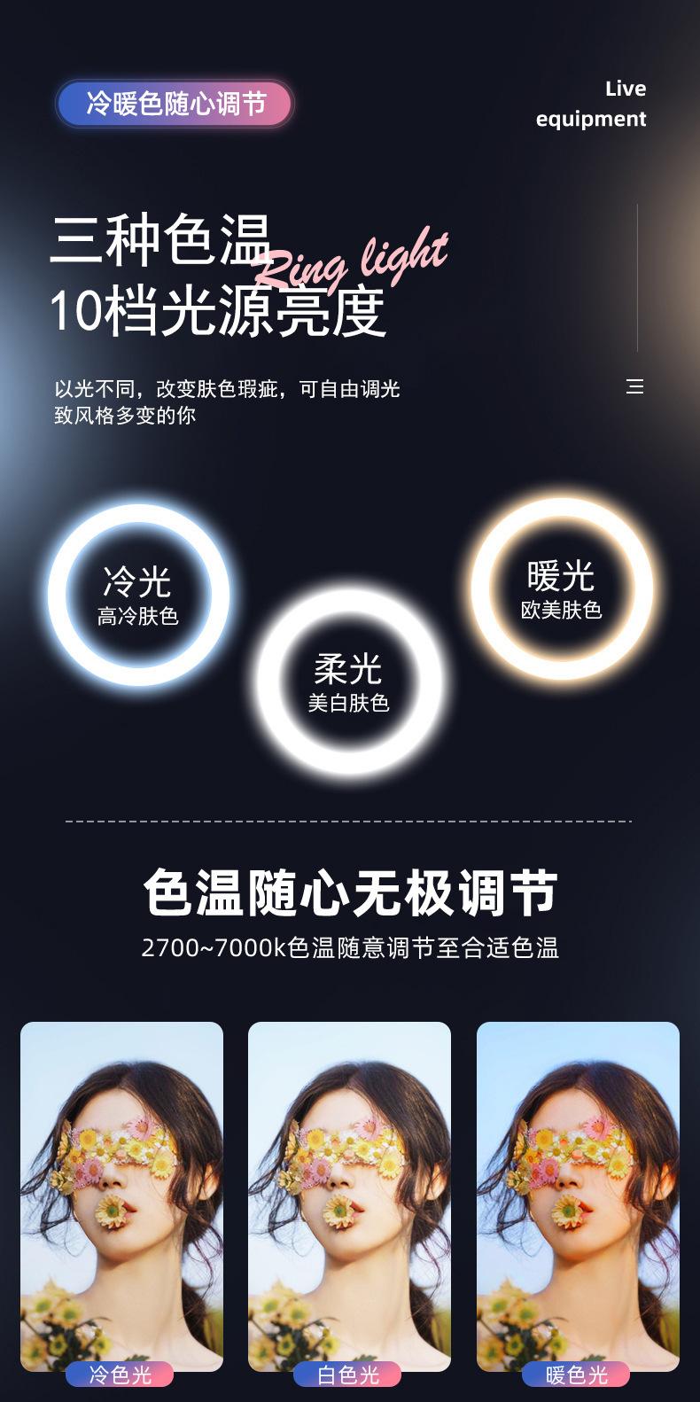 Soporte de transmisión en vivo, luz de relleno de belleza, anillo de luz, soporte de trípode en vivo, luz de relleno, luz de relleno LED para teléfono móvil