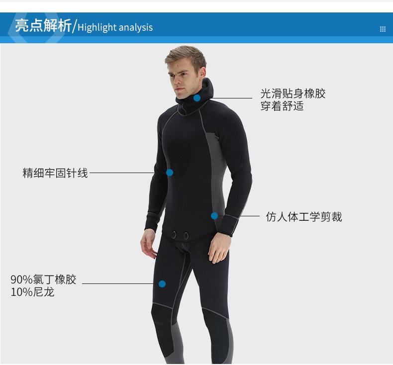 Cómodo Cálido Invierno Grueso Traje de Surf Adulto para Hombre Chaqueta Negra con Capucha Pantalones sin Mangas Traje de Buceo sin Mangas