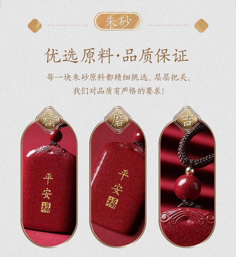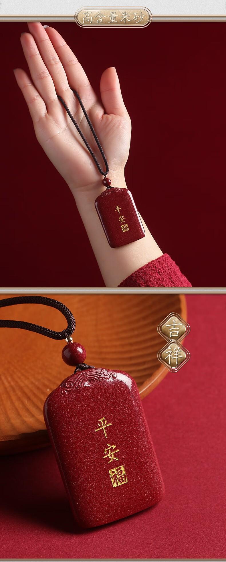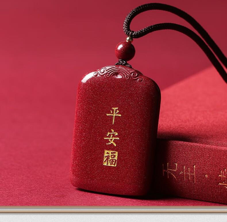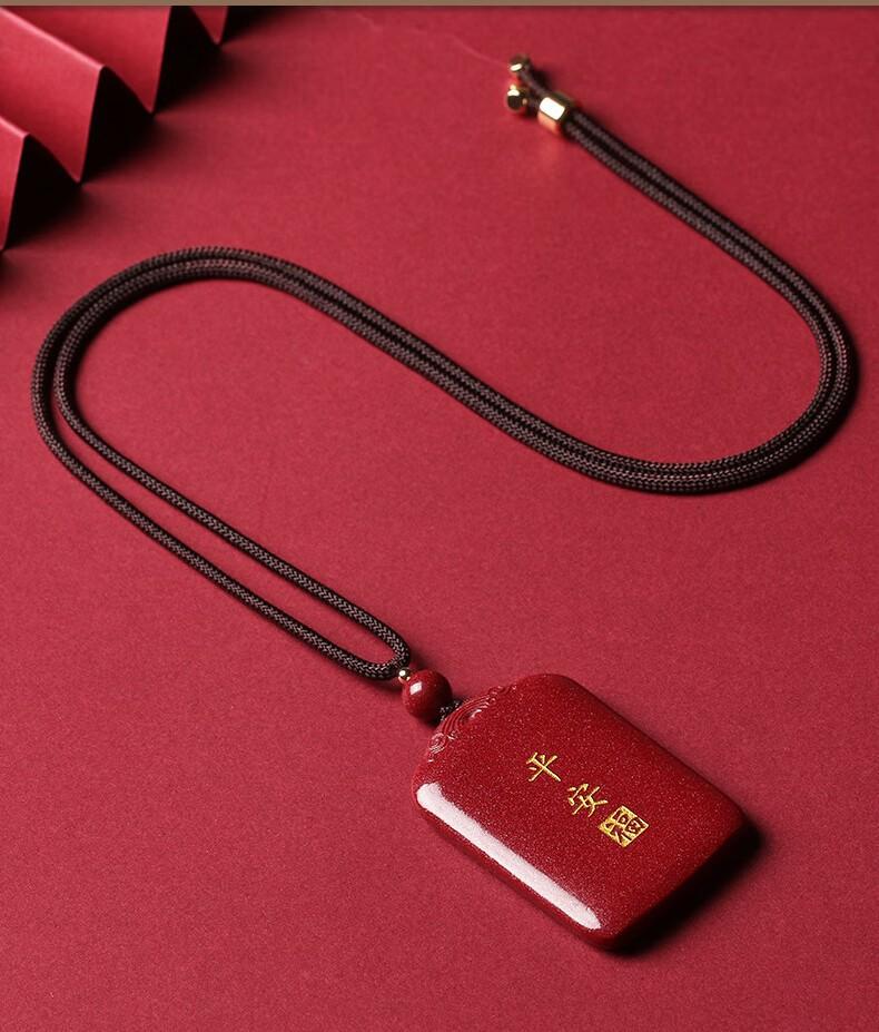 Collar con colgante de cinabrio natural, oro morado y arena, con tarjeta de seguridad para hombres y mujeres en el año del Dragón.