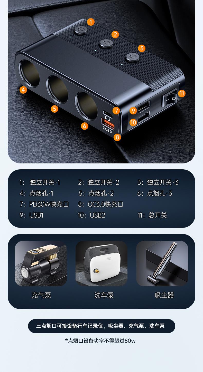 Pantalla de tubo digital: visualización de voltaje Con interruptor independiente e interruptor principal Cuando se utilice un solo orificio para encender un cigarrillo, la potencia no deberá superar los 80 vatios. Un solo puerto ordinario puede alcanzar los 80 W. |