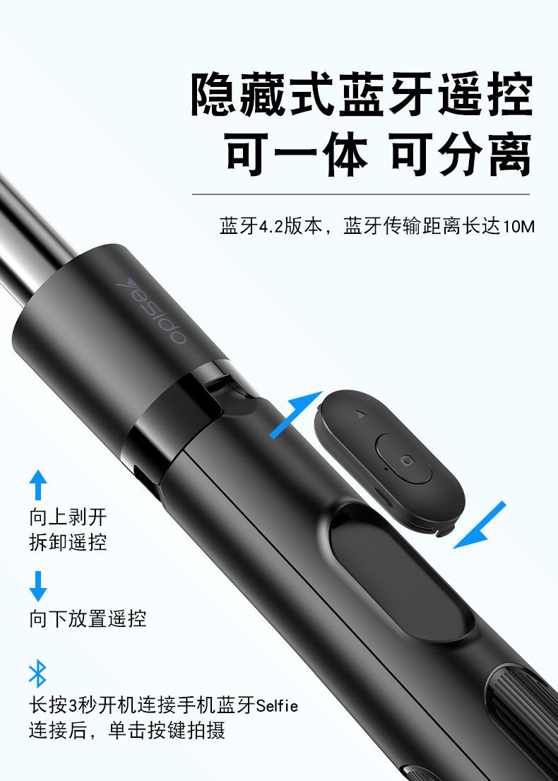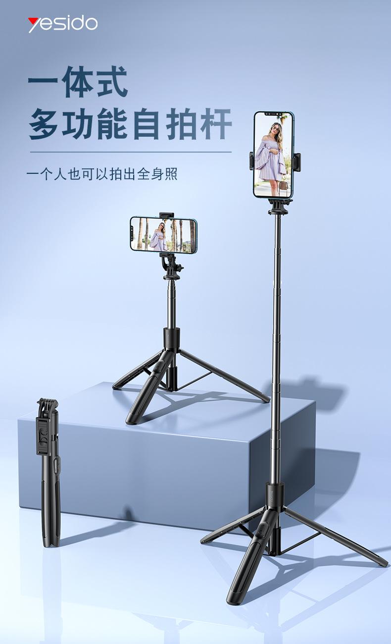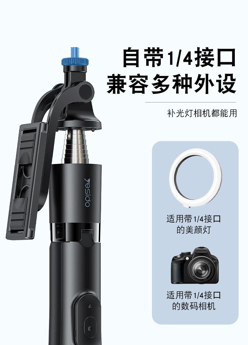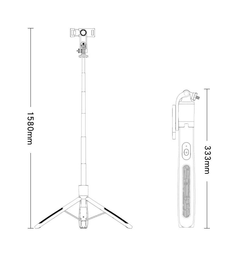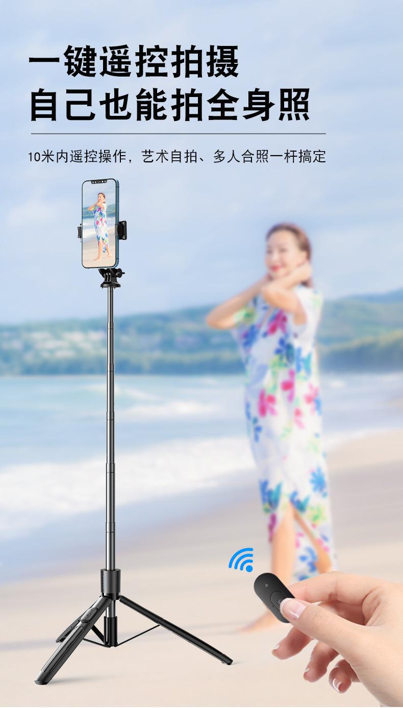 Soporte retráctil para selfies y transmisión en vivo, posicionamiento triangular, estable. La longitud máxima de extensión es de 158 cm. La parte superior tiene posiciones de tornillo reservadas para grabadoras de video, cámaras, luces de relleno y otros equipos. Especialmente adecuado para exteriores y transmisión en vivo.
