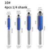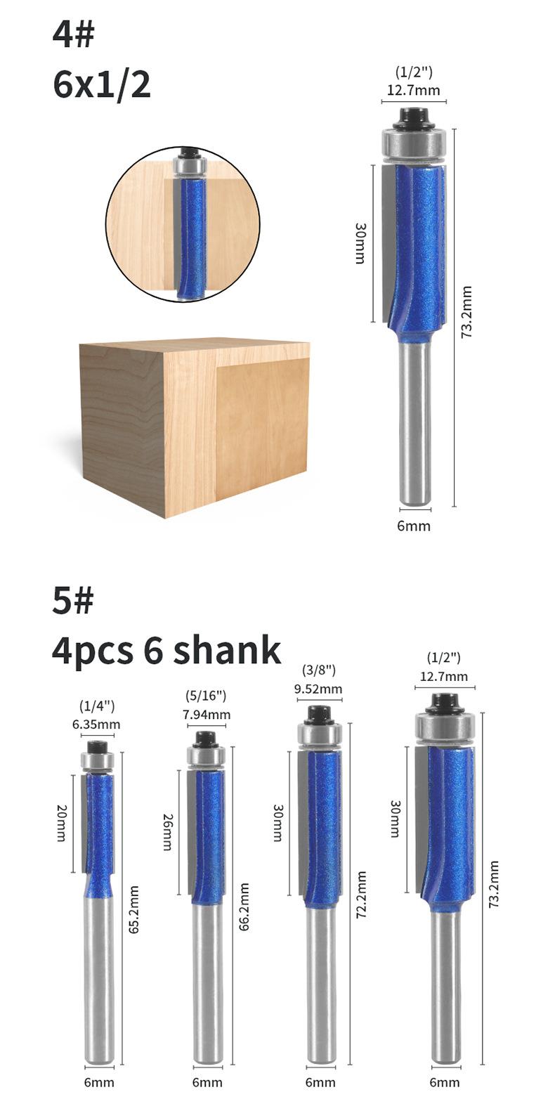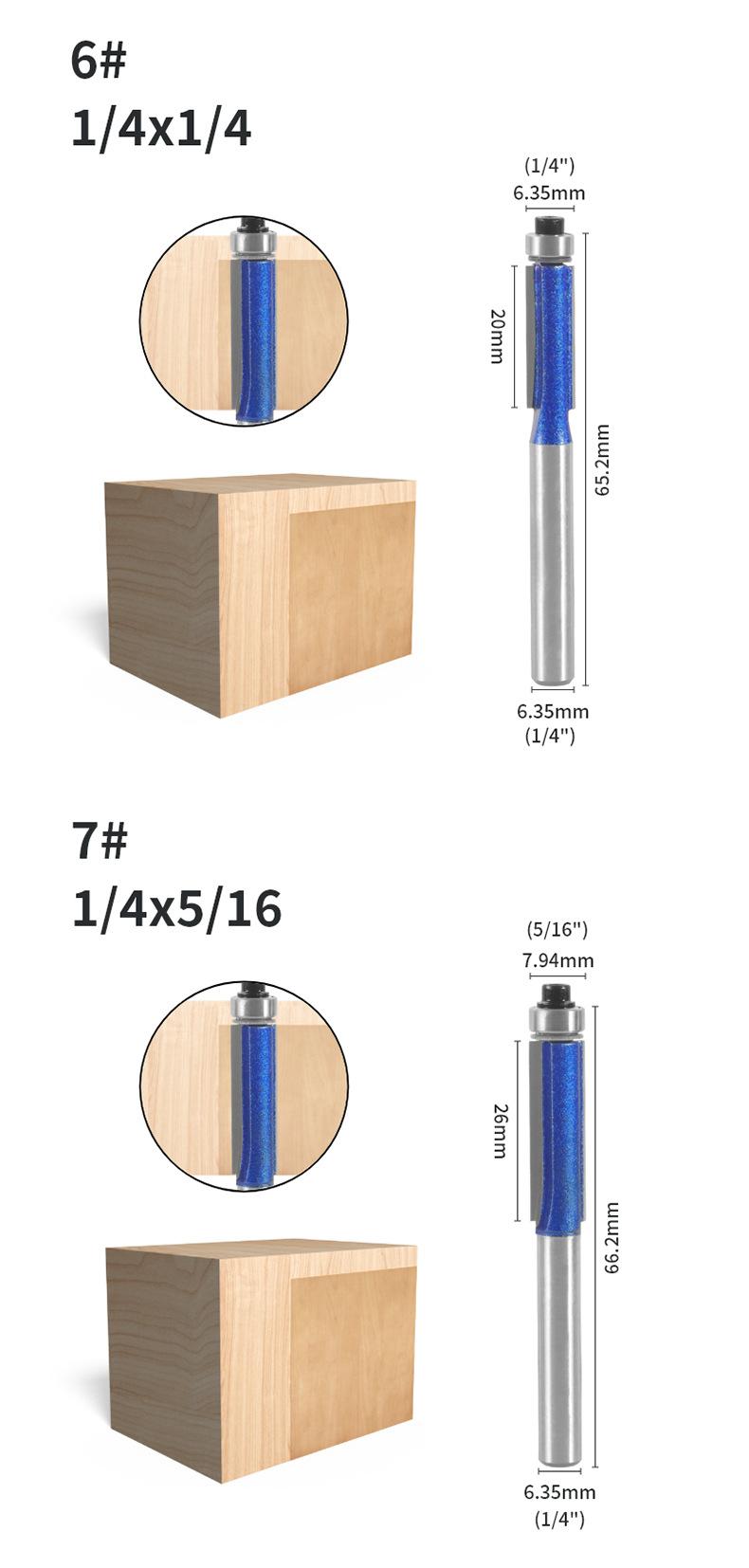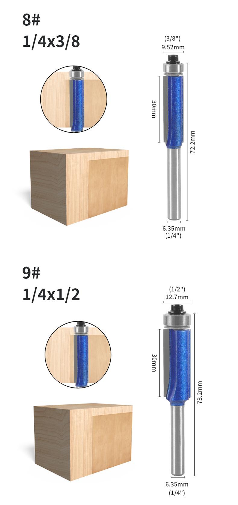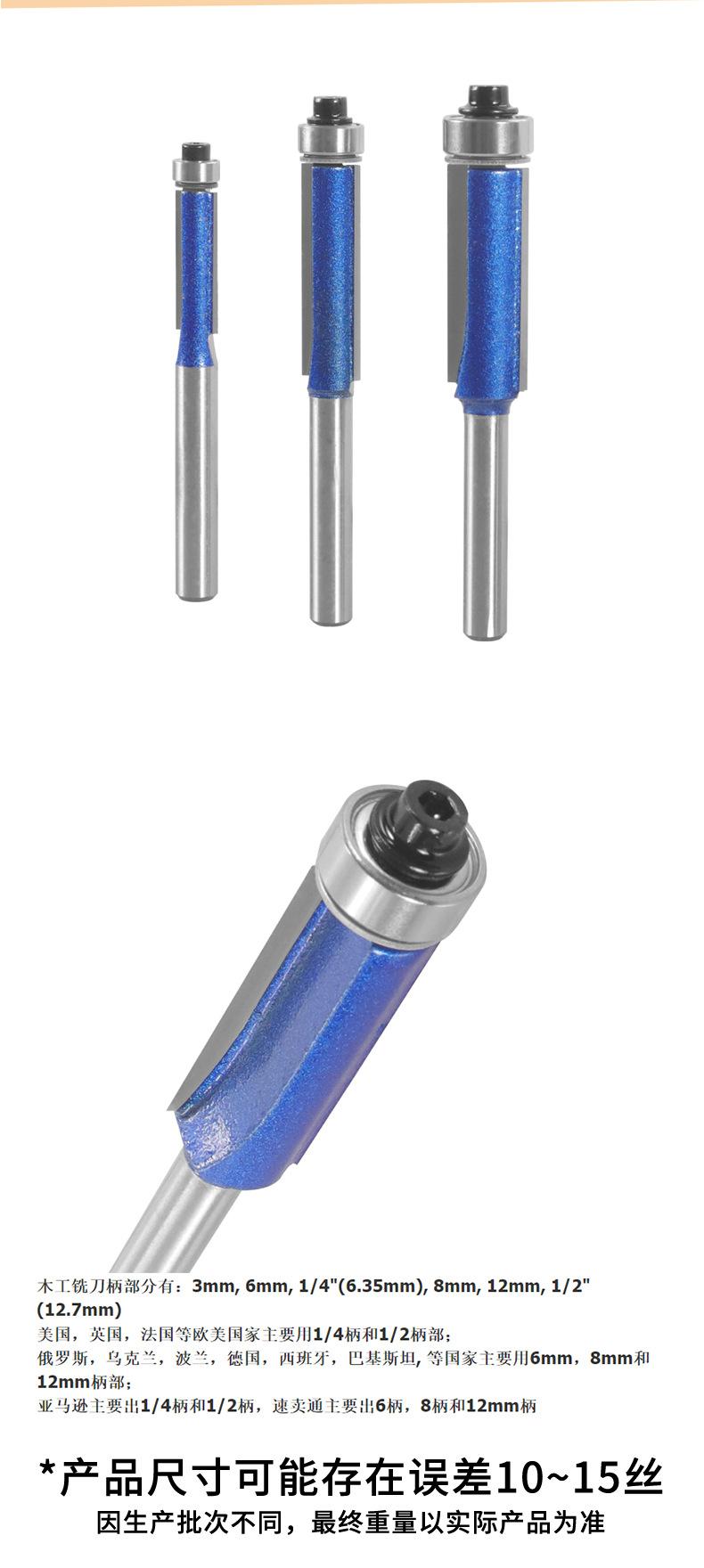 Cortador de rodamientos de grado profesional con mango de 1/4, cortador biselado azul plateado con destellos, tira de sellado de bordes, acabado de bordes, cortador de fresado para carpintería