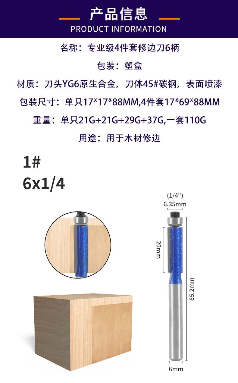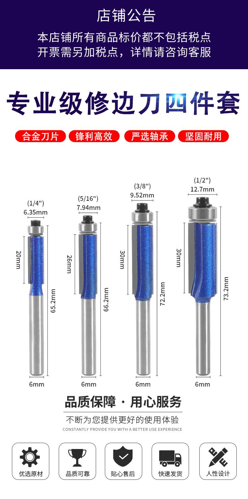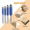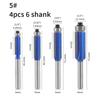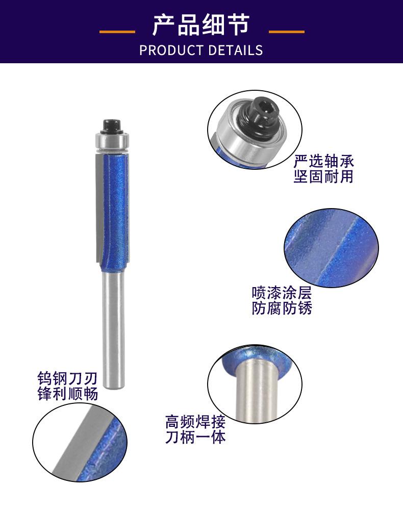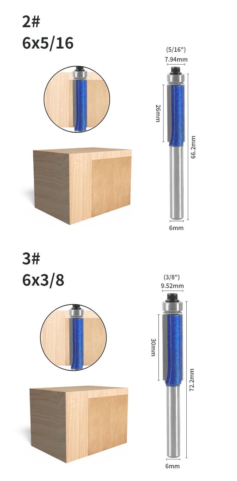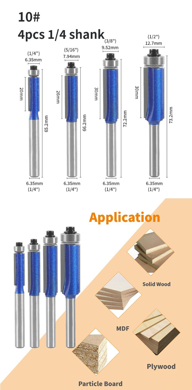 Cortador de rodamientos de grado profesional con mango de 1/4, cortador biselado azul plateado con destellos, tira de sellado de bordes, acabado de bordes, cortador de fresado para carpintería