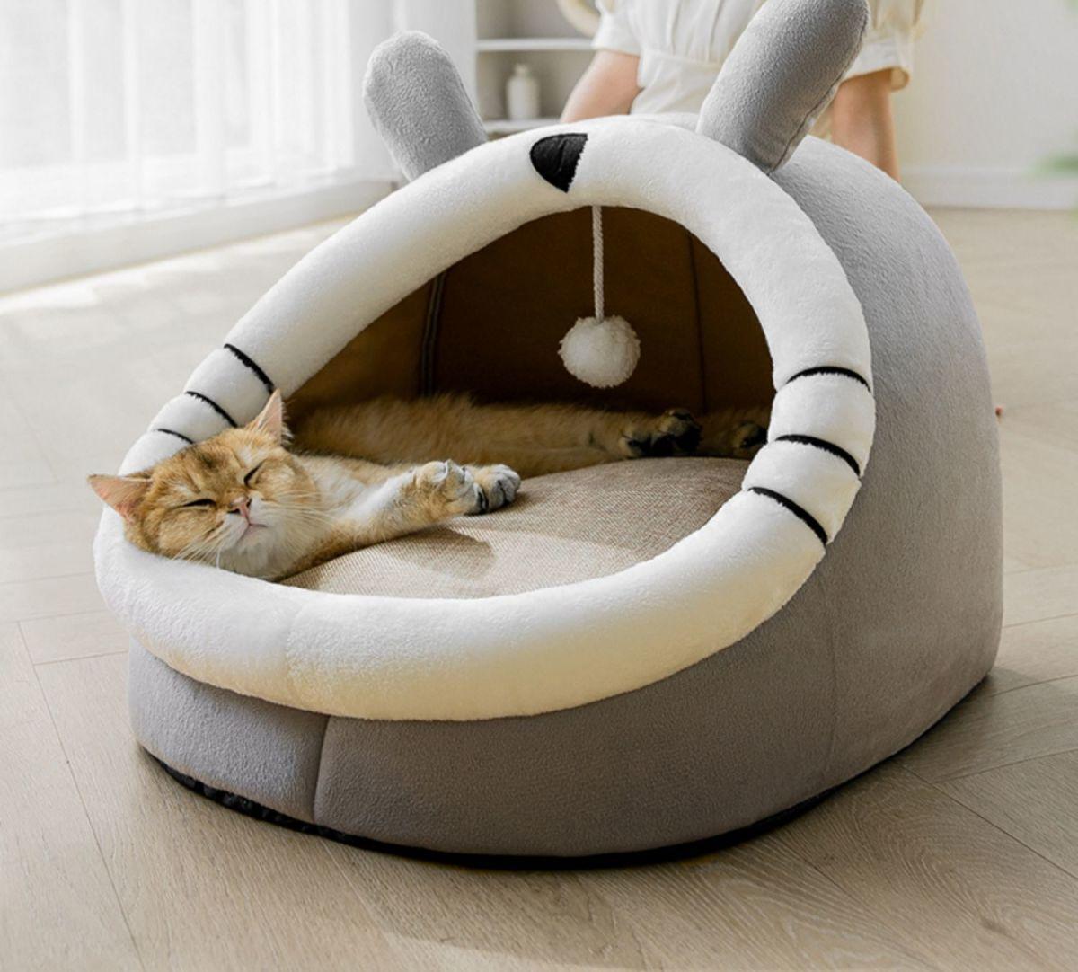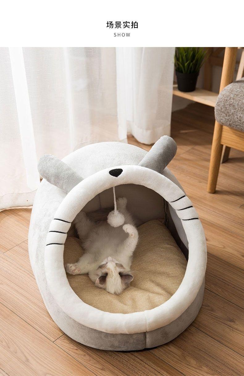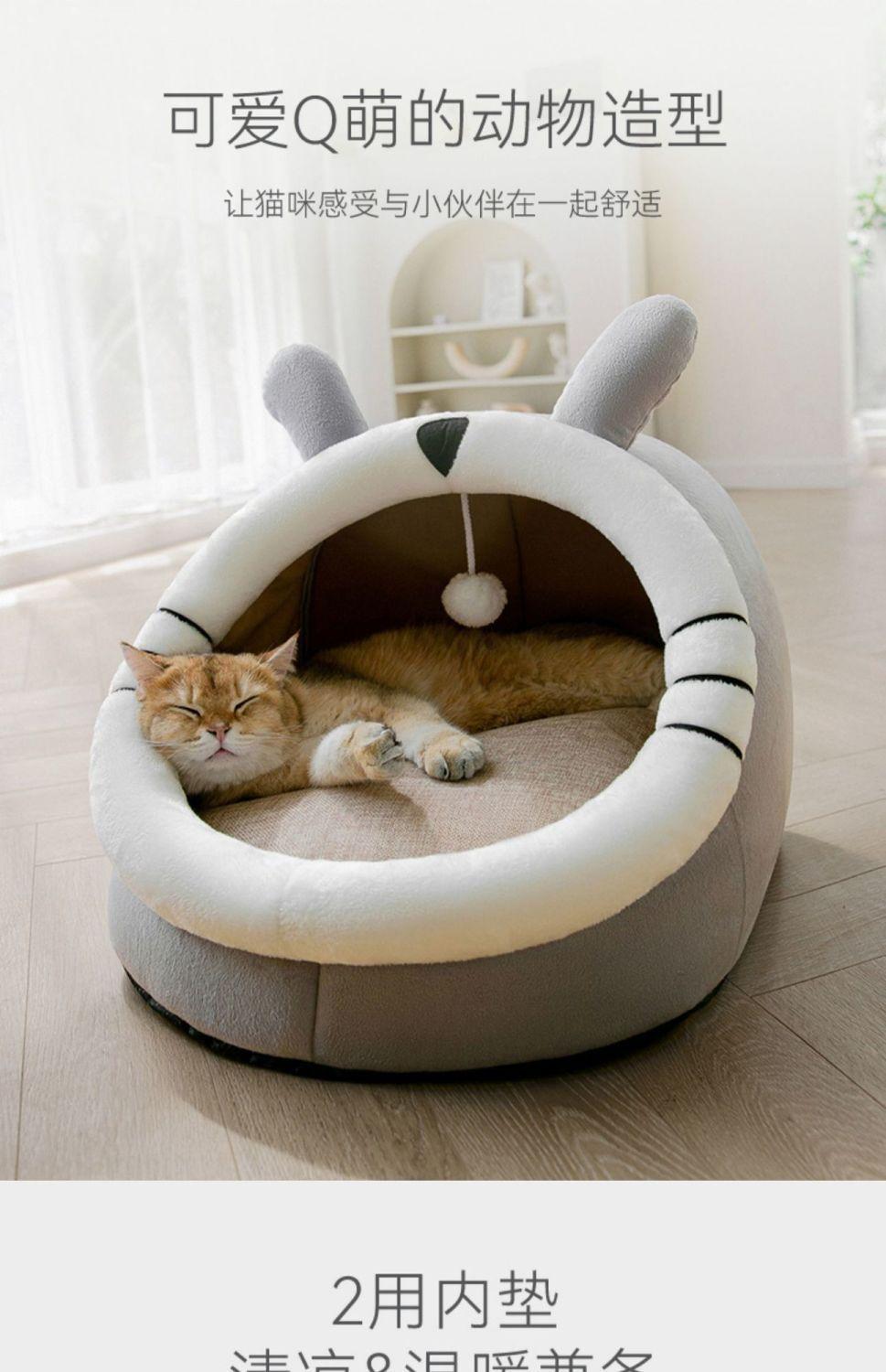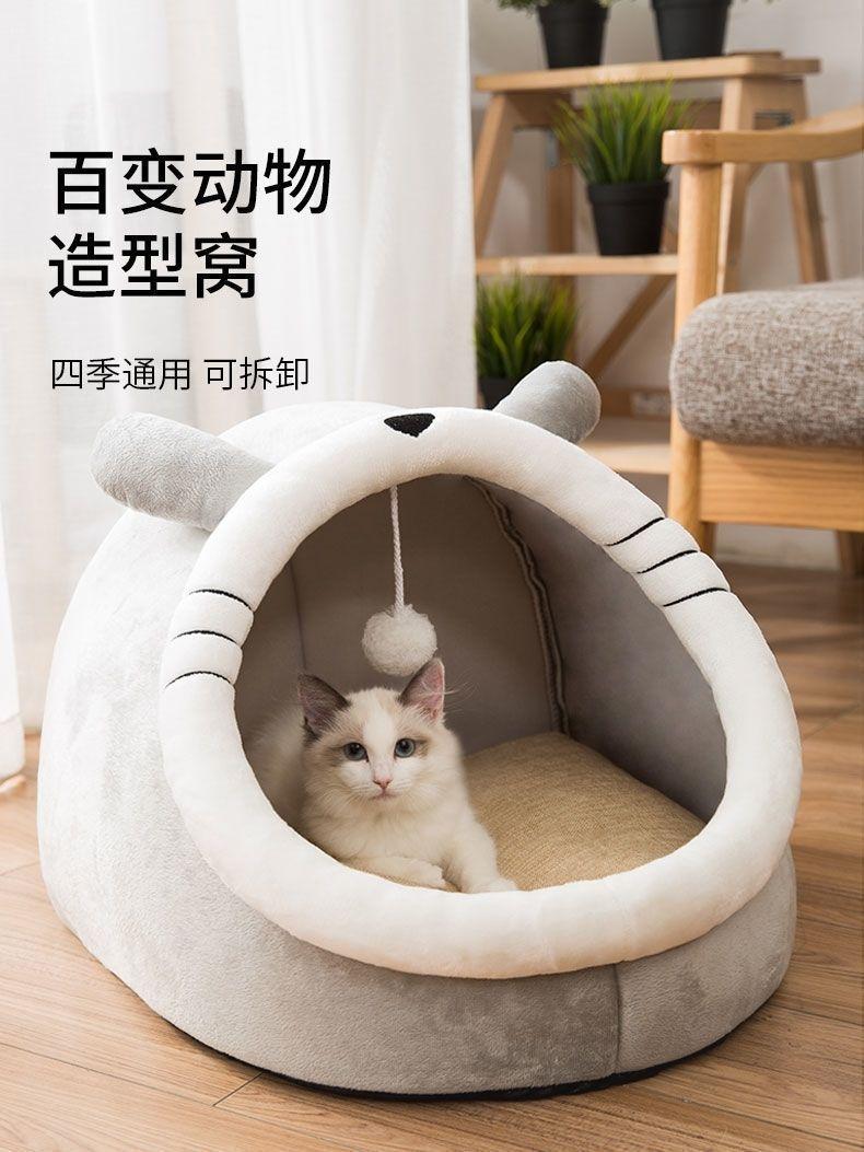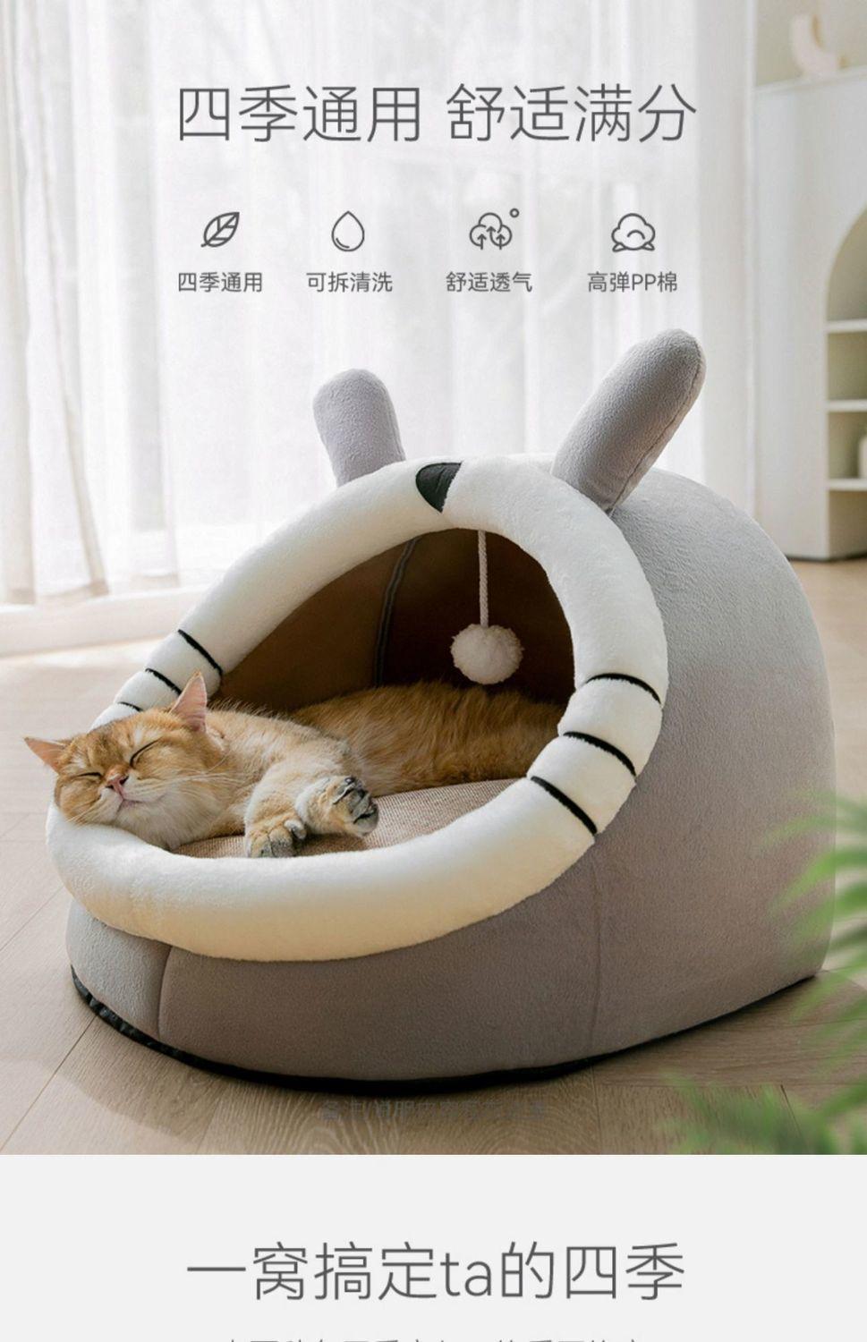 Nido para gatos, caseta cálida de invierno para gatos, nido para mascotas, extraíble y lavable, cama semicerrada para gatos, cuatro estaciones, universal