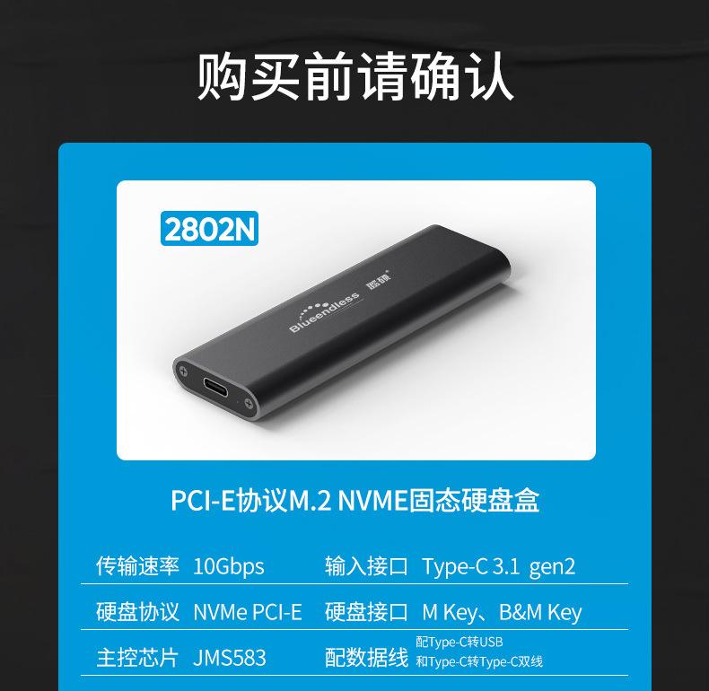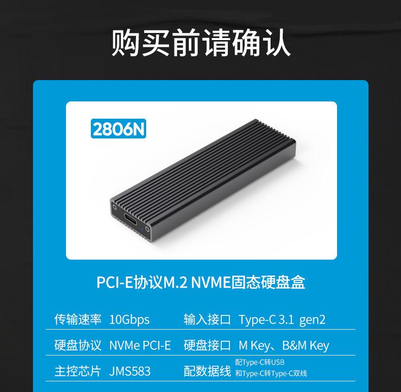 Caja para Unidad de Estado Sólido M.2Nvme Usb3.1Gen2 Tipo de Conexión para Laptop Tipo-C Móvil 10Gbps Refrigeración