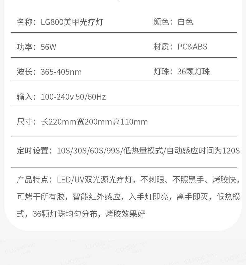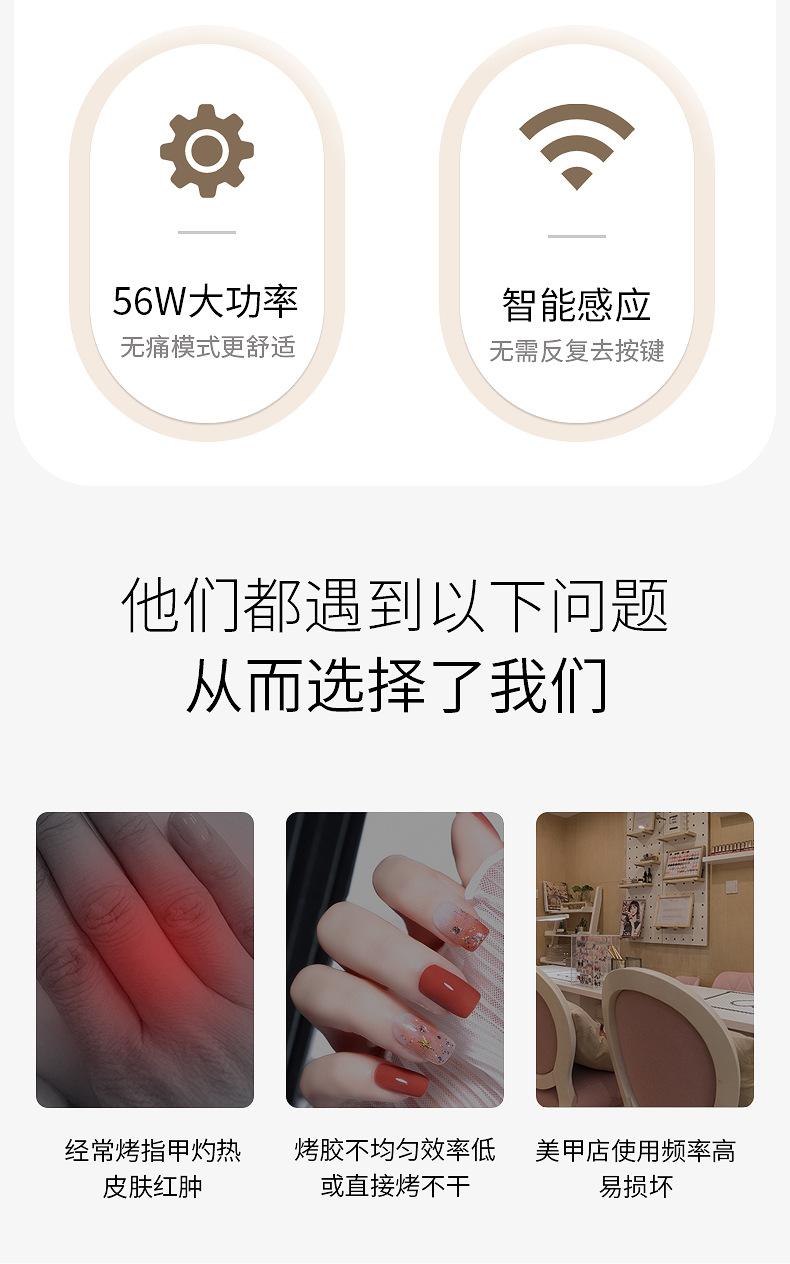 Lámpara de uñas LUGX de 56 W de alta potencia, máquina de fototerapia, lámpara de uñas de secado rápido con inducción inteligente LED, lámpara para hornear